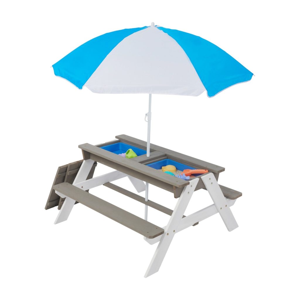 Детска Градинска Маса 3 в 1 GINGER HOME, Чадър с Регулируема Височина, Подвижен Плот за Активни Игри на Открито