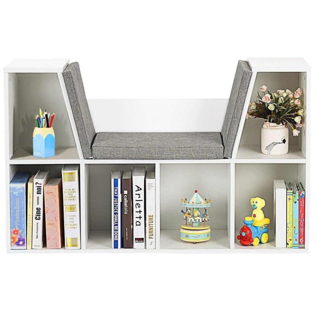 3 в 1 Детска Етажерка, Библиотека и Пейка, 6 Отделения за Съхранение на Играчки и Книжки, Подарък за 3+ години