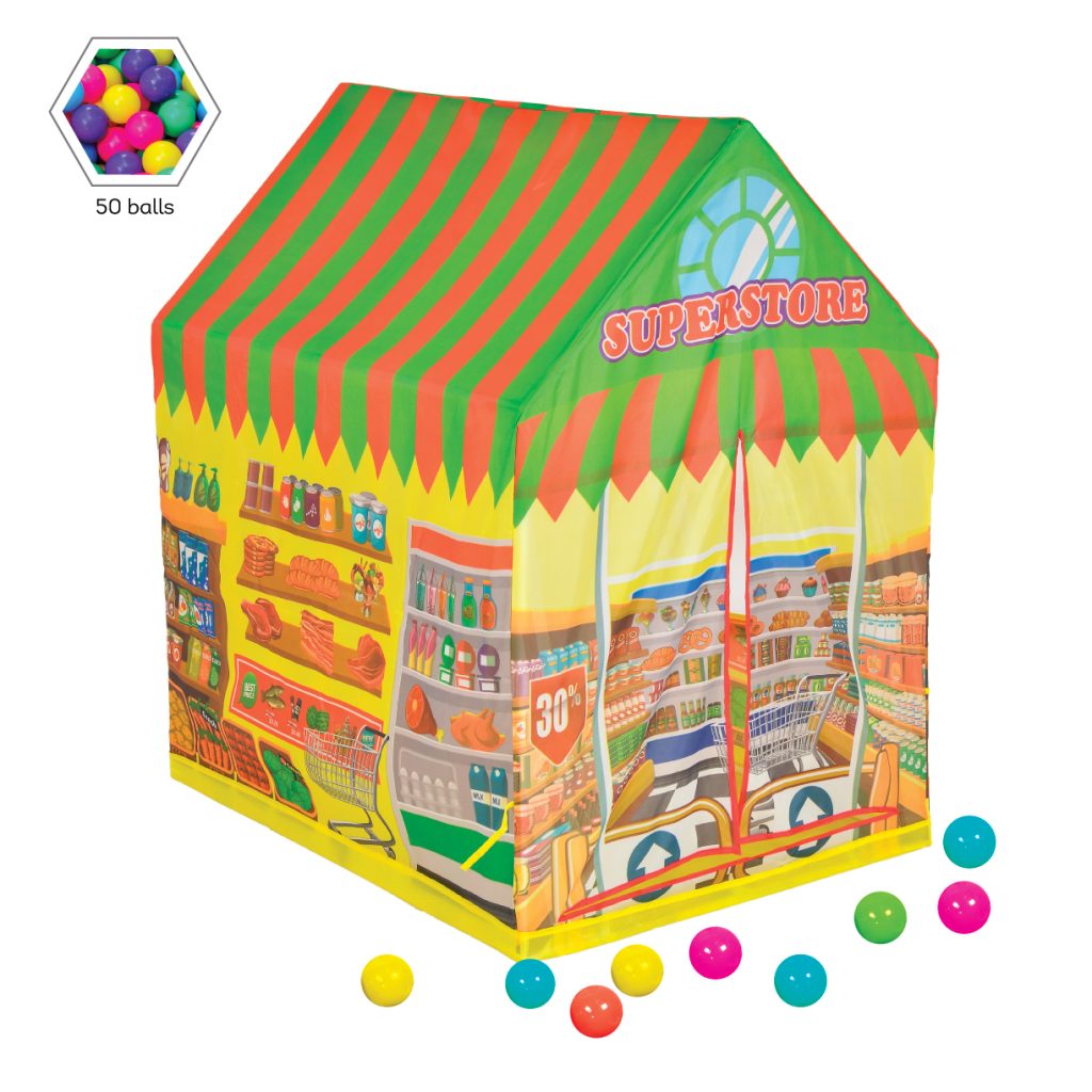 Детска Дървена Къща за Игра 6 в 1 GINGER HOME – Стол, Маса, Черна Дъска, Органайзер, Тента и Мека Подложка