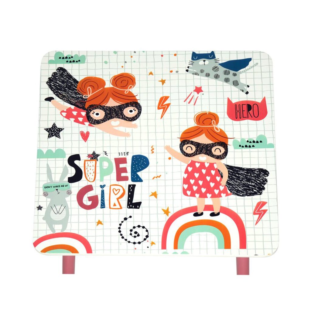 Детска Дървена Маса с 2 Столчета, Комплект за Учене, Игра, Рисуване, Хранене, Бяло, Розово – SUPER GIRL