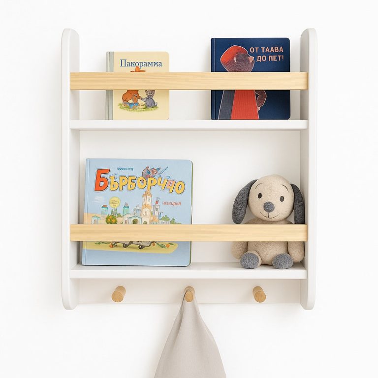 Стенна Детска Етажерка GINGER HOME – Бяла, с Рафтове и Закачалки