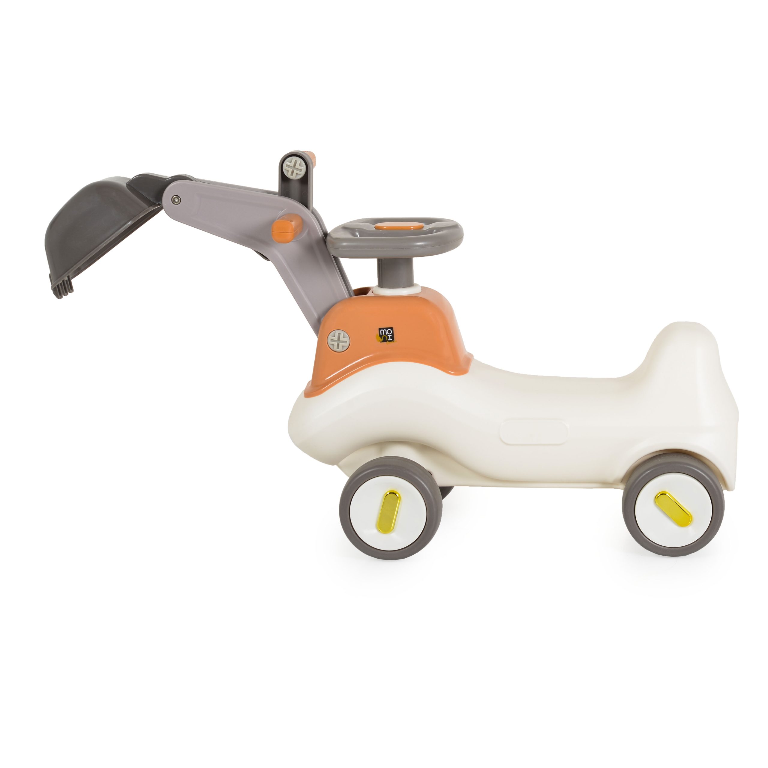 С подвижно гребло и реалистичен дизайн, играчката лесно се трансформира от багер в кола – просто демонтирайте греблото и поставете включената оранжева тапа. За още по-забавно изживяване, монтирайте основата за люлеене с помощта на включените фиксатори. Уверете се, че основата е добре закрепена преди употреба!