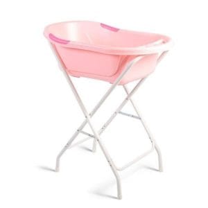 - Стабилна и здрава конструкция: Стойката е изработена от устойчиви материали, които гарантират безопасността на бебето. Тя е стабилна и може да поддържа бебешката вана сигурно, дори когато е пълна с вода.