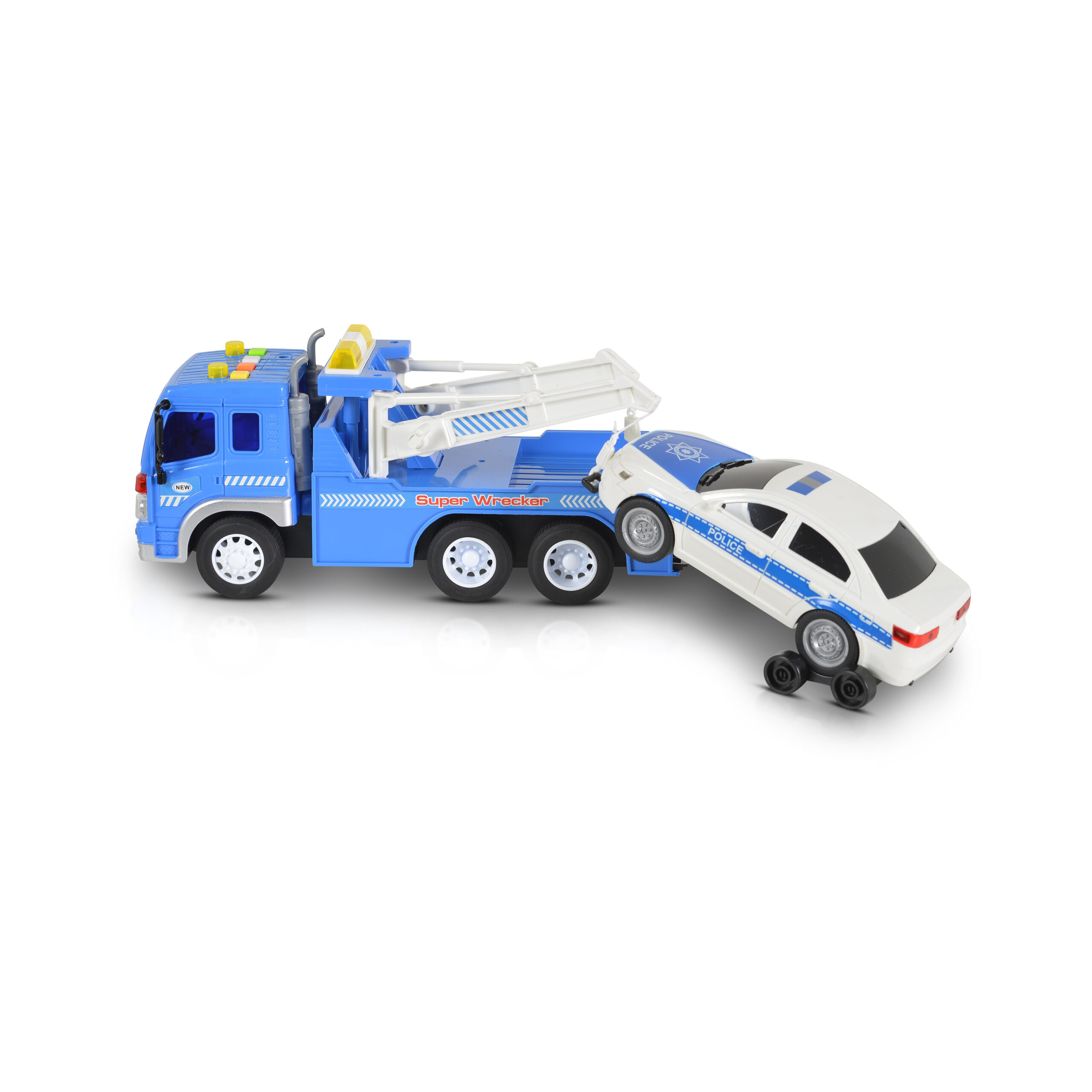 Комплектът включва репатрак и допълнителна кола, които позволяват на децата да разиграват различни пътни ситуации и стимулират въображението и координацията. Изработен от здрави и безопасни материали, моделът е подходящ за продължителна и активна игра.
