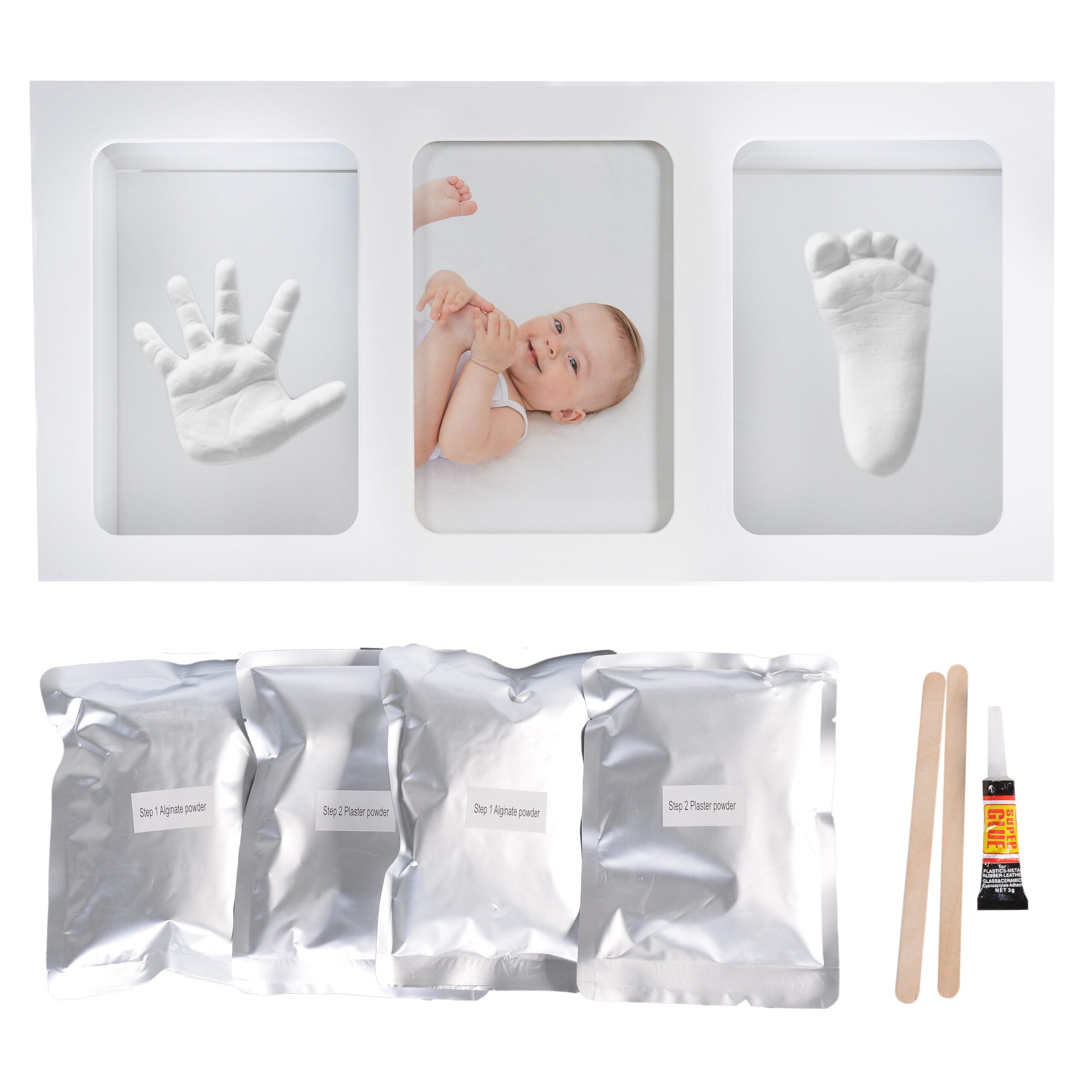 Рамката е чудесен подарък за първи рожден ден, например. Комплектът съчетава рамка с отделено място за две гипсови отливки и снимка за спомен.