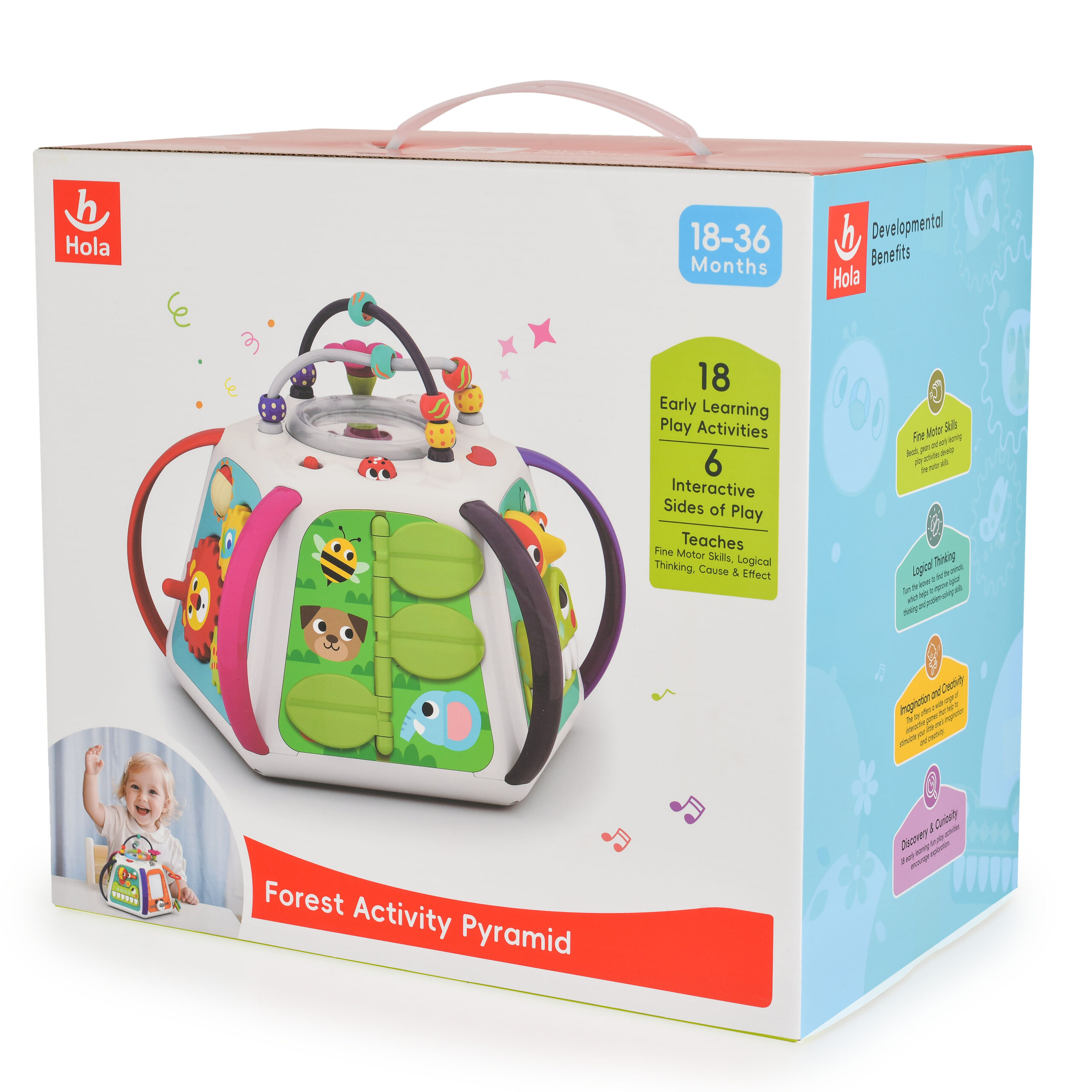 Забавен и образователен център с шест интерактивни страни, предназначен за деца над 18 месеца. Със своите ярки цветове и разнообразни активности, той стимулира развитието на фината моторика, логическото мислене и координацията око-ръка. Детето може да се наслаждава на лабиринт с мъниста, въртящи се зъбни колела, оптични илюзии, звуци на животни и светлинни ефекти. Подходящ за момчета и момичета.