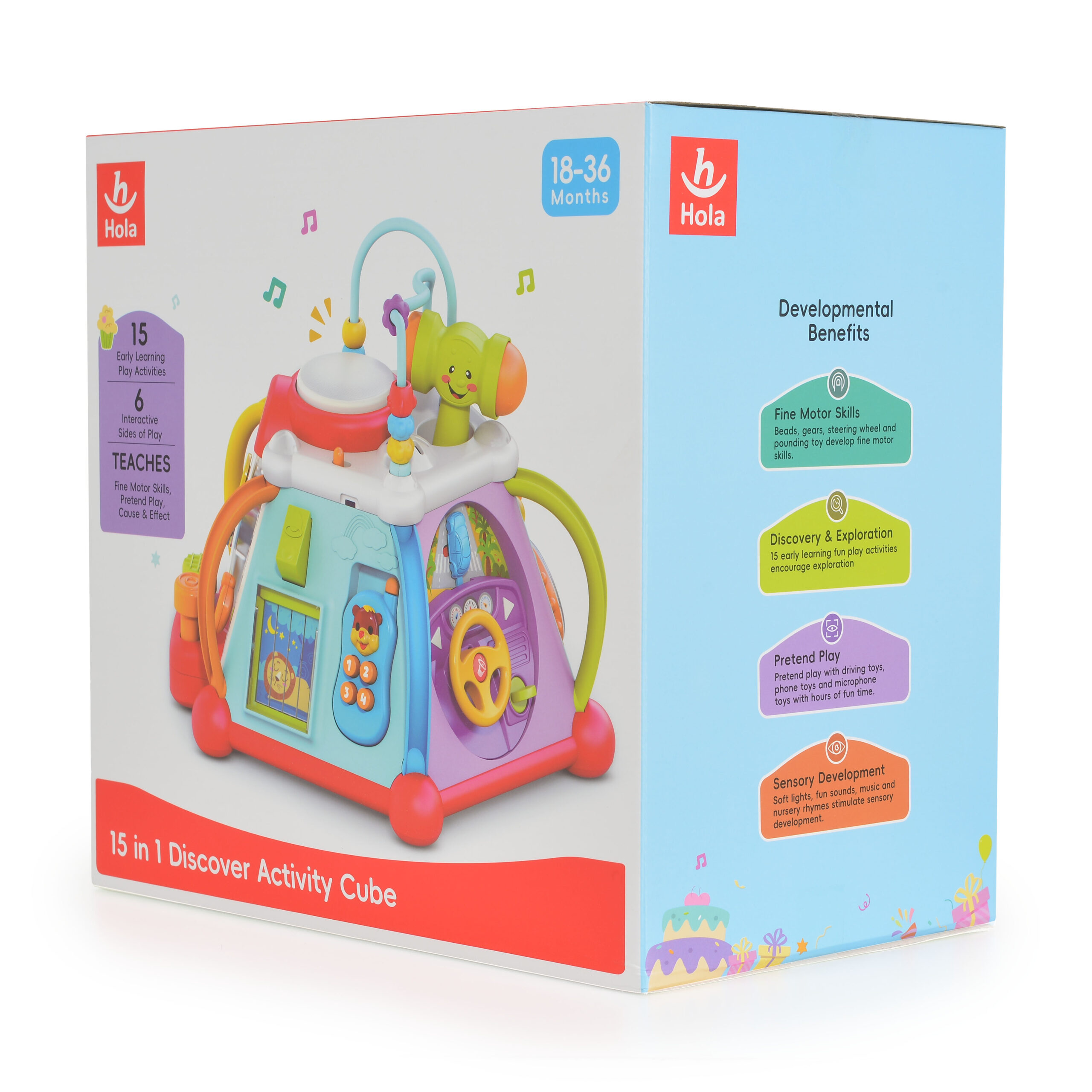 • Ярък дизайн с множество активности за натискане, въртене и разклащане, които задържат вниманието на детето