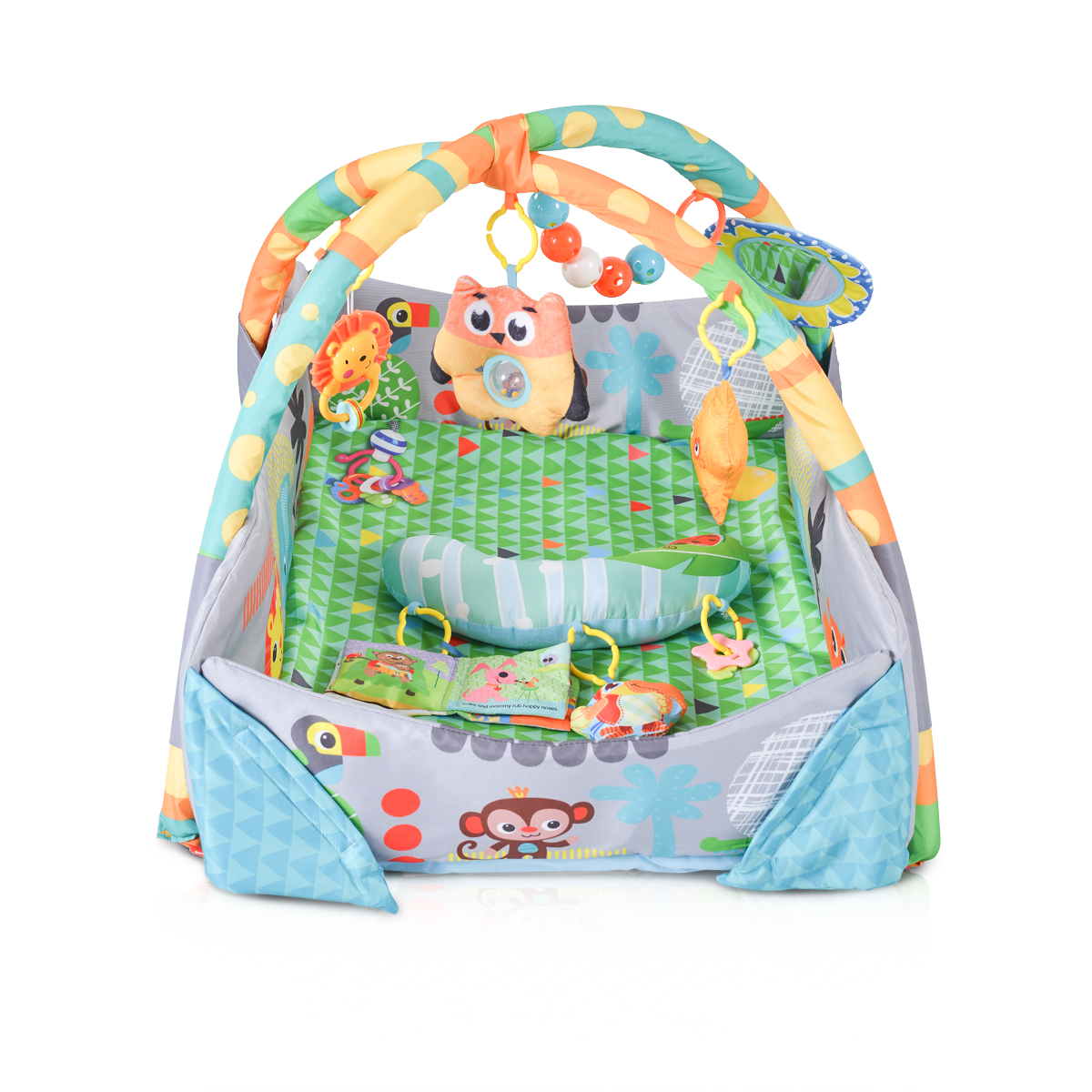 Активната гимнастика Oasis ще забавлява малчугана и в същото време ще насърчи нови умения, като хващане, стимулиране на сетивата и разпознаване на различни звуци.
