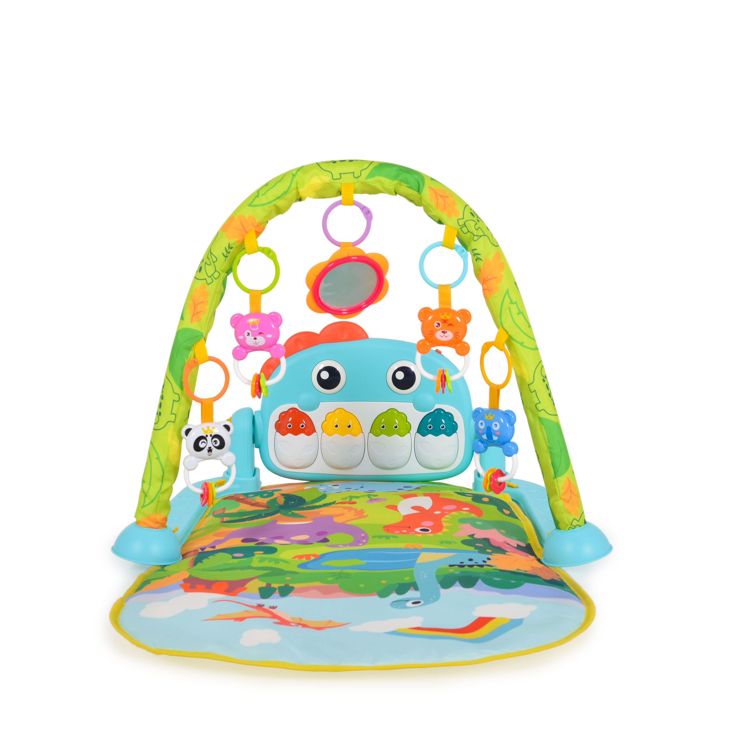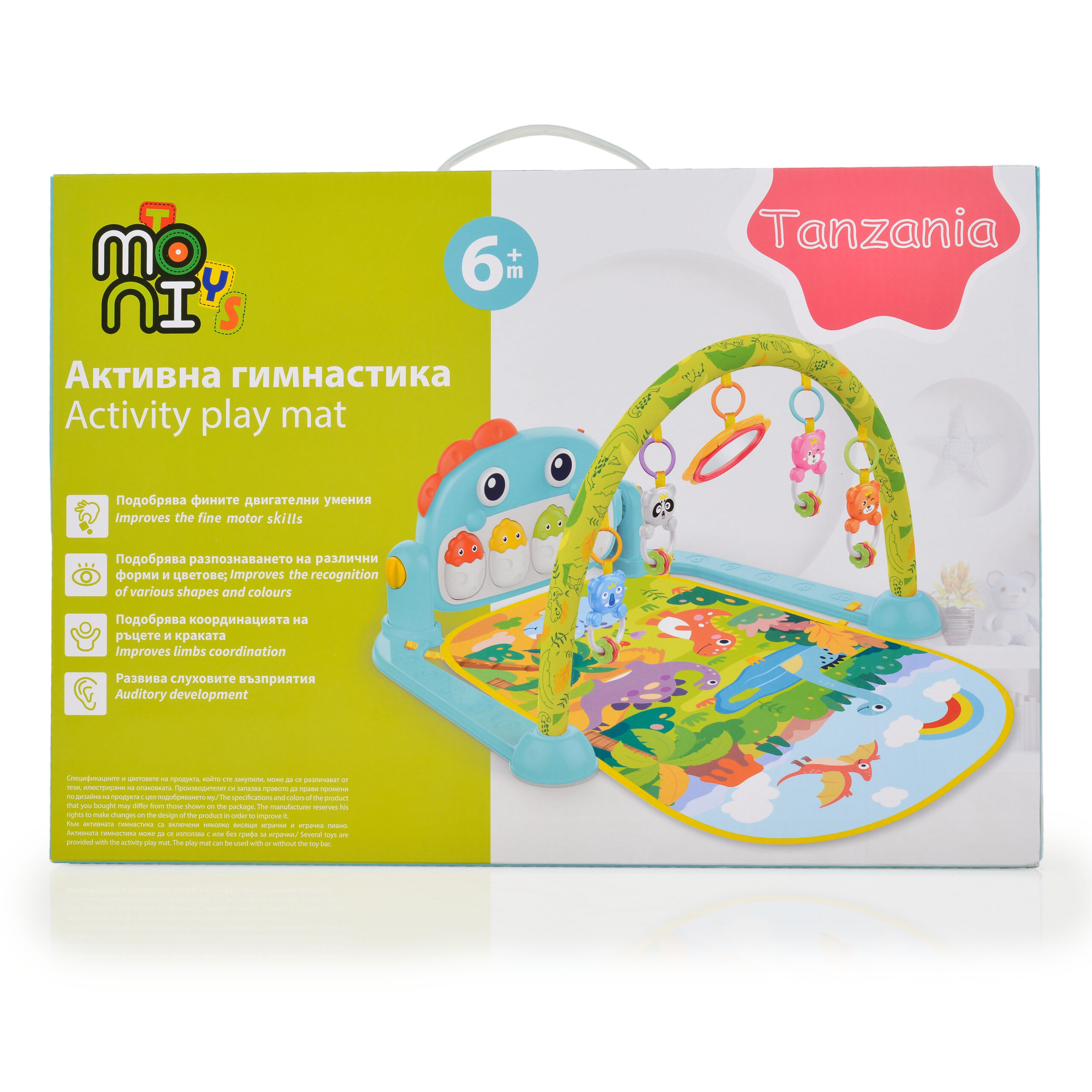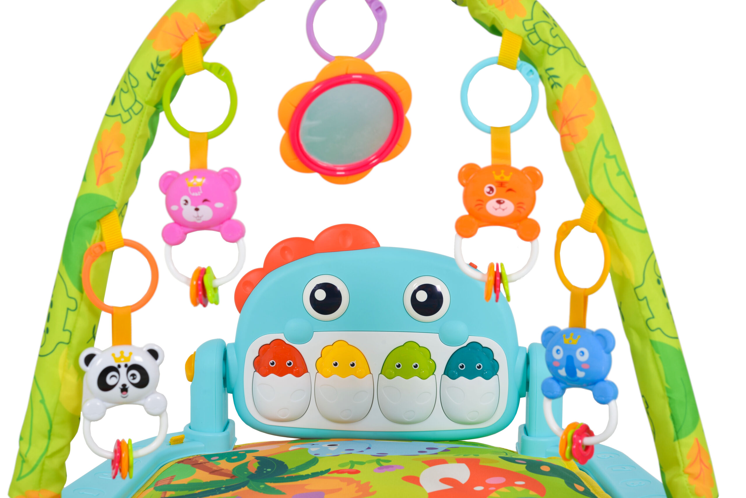 Към продукта са включени няколко играчки, които могат да се окачат по грифовете, и музикалната играчка пиано.