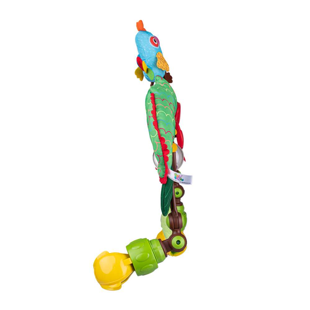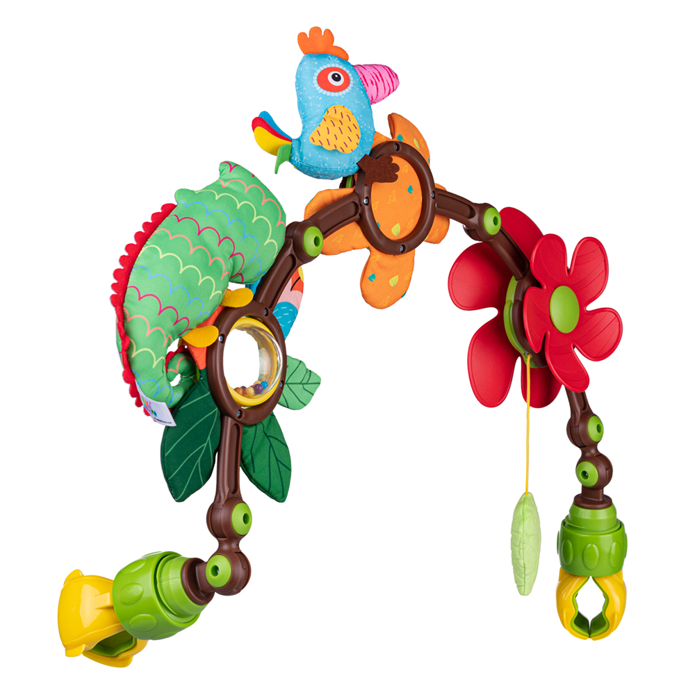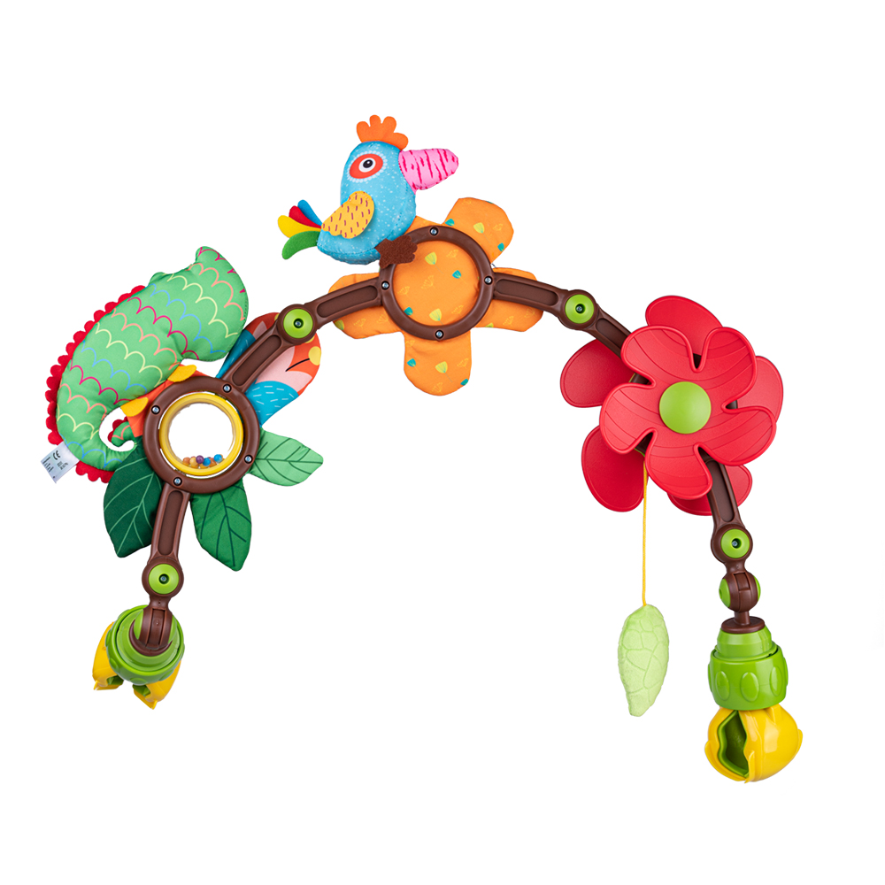 Характеристики: цвете- въртящо колело, шумолящи елементи, различни материи, дрънкалка, клипсове за лесно фиксиране, огъващи се фиксиращи елементи с възможност за поставяне под различни ъгли.