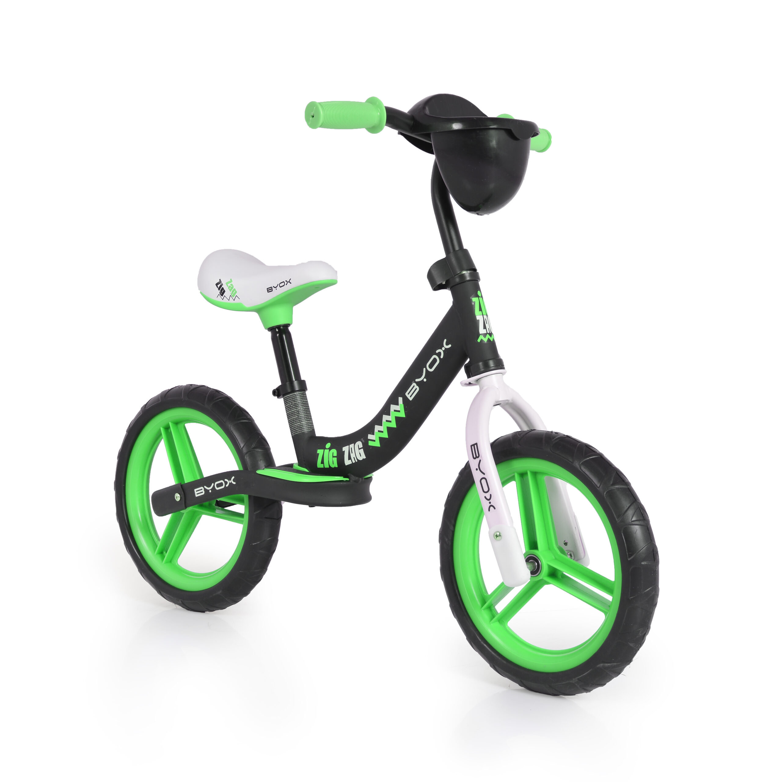 Балансиращият велосипед Zig Zag от Byox е подходящ за деца от 12 до 36 месеца и с максимално тегло до 17 кг, като подпомага развитието на баланс, координация и увереност при първите стъпки към каране на велосипедЛеката конструкция и удобният дизайн го правят идеален избор за разходки и активна игра.