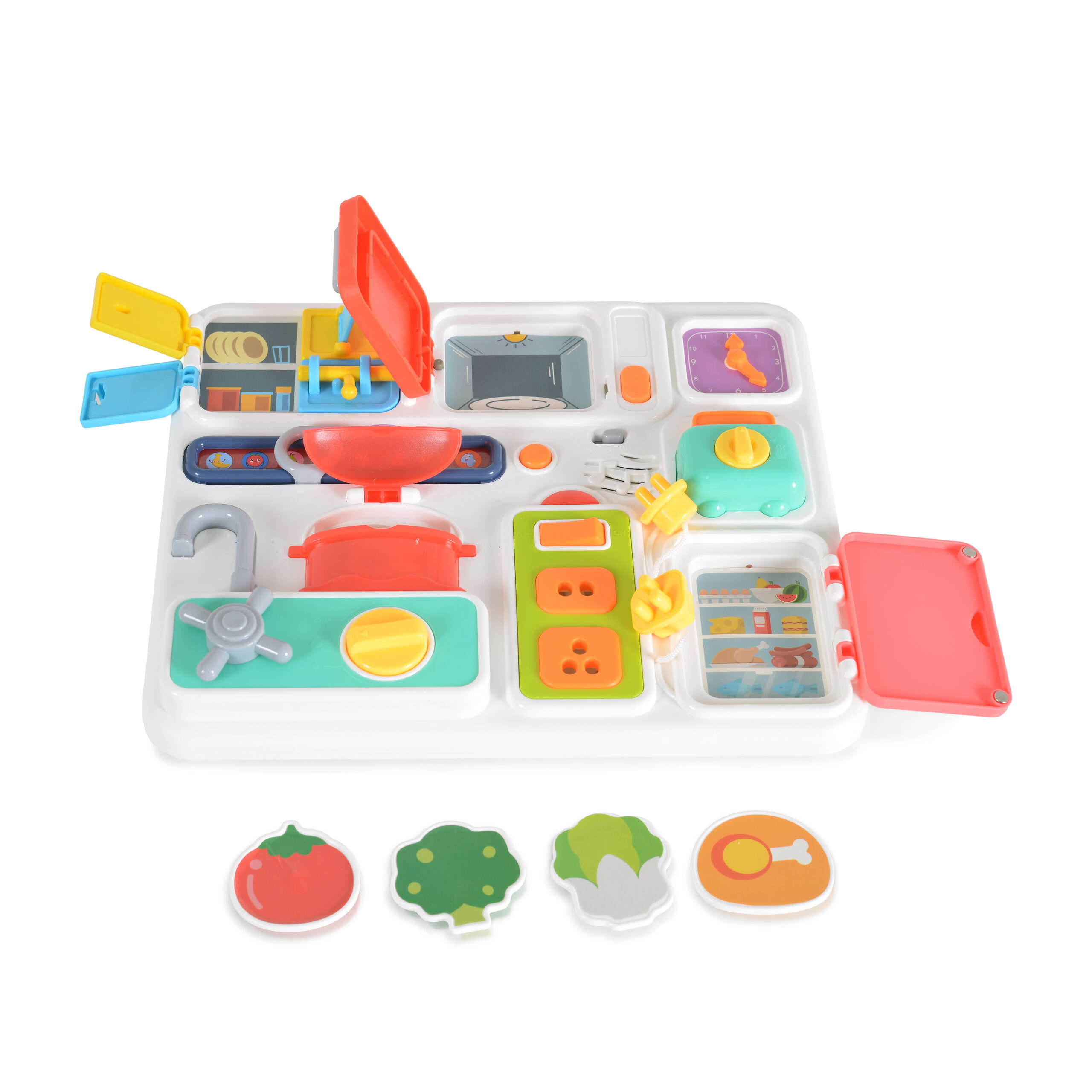 Представете на вашето дете първата му мини кухня с музика и светлини, вдъхновена от Монтесори метода за учене чрез игра. Тази интерактивна дъска комбинира забавление и развитие, като стимулира сетивата, фината моторика и креативността.