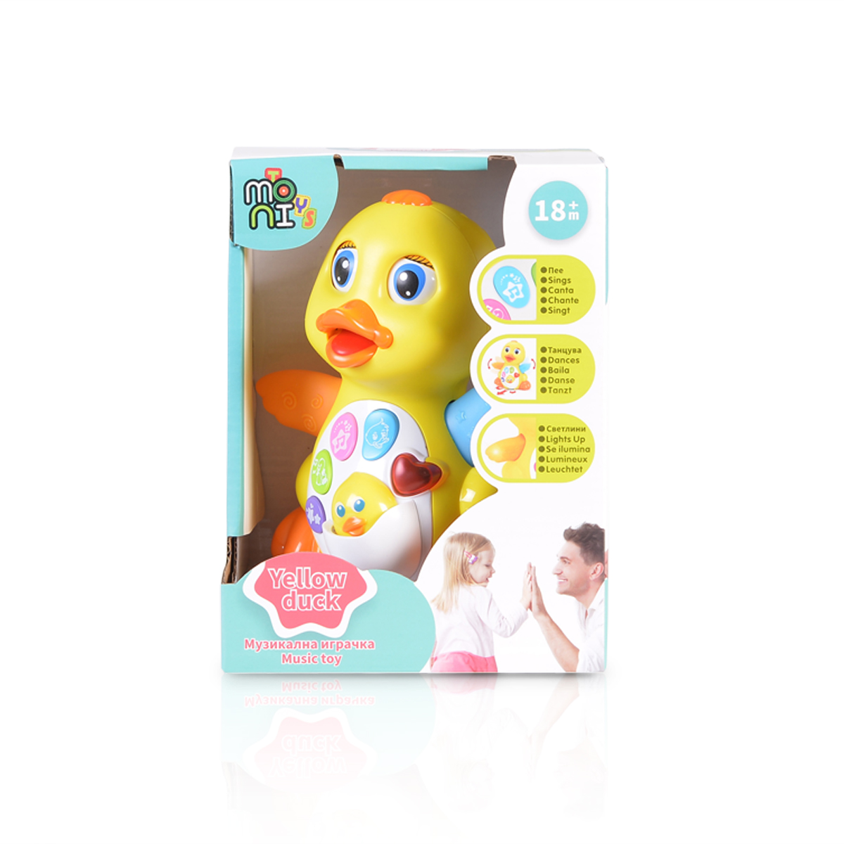 Различни музикални бутони, които при натискане активират 7 различни мелодии и песничките "Six Little Ducks" и "Quick, Quack, Quick";
