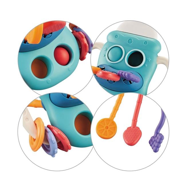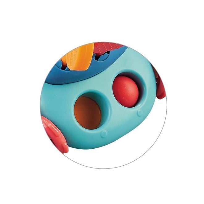 Тази многофункционална сензорна играчка е създадена, за да подпомогне цялостното развитие на бебето още от 18-месечна възраст. Тя стимулира двигателните умения, насърчава координацията между ръцете и очите и подобрява гъвкавостта чрез игра. Изработена е от безопасен силикон и издръжлива пластмаса, с различни елементи за натискане, дърпане и въртене, които насърчават активното и творческо изследване. Ярките контрастни цветове привличат вниманието и помагат на детето да разпознава форми и нюанси.