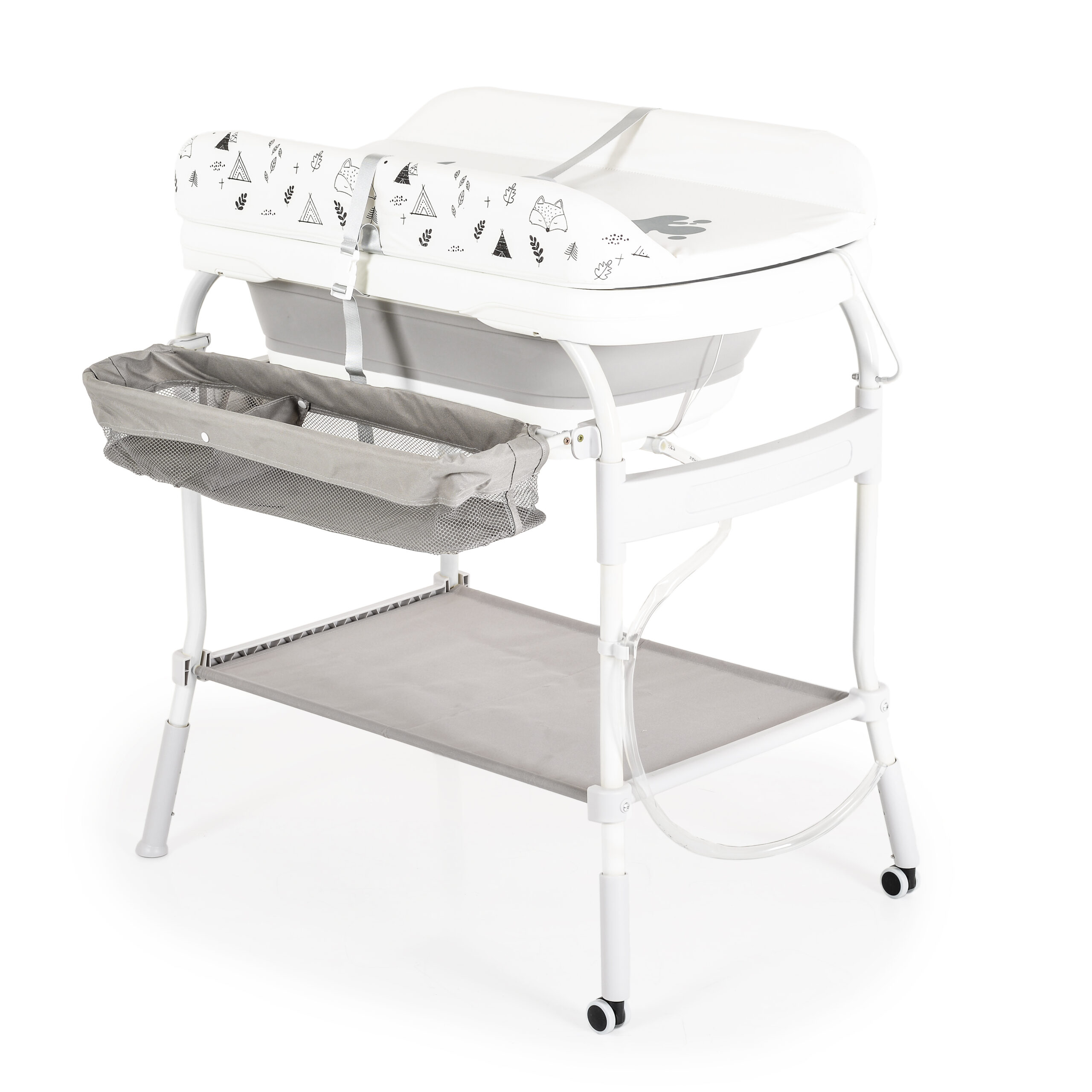 – Практична опция за родителите, тъй като регулируемите крачета на стойката позволяват настройка на височината в четири позиции, осигурявайки удобство при обслужването на бебето;