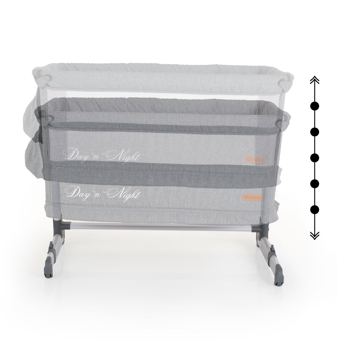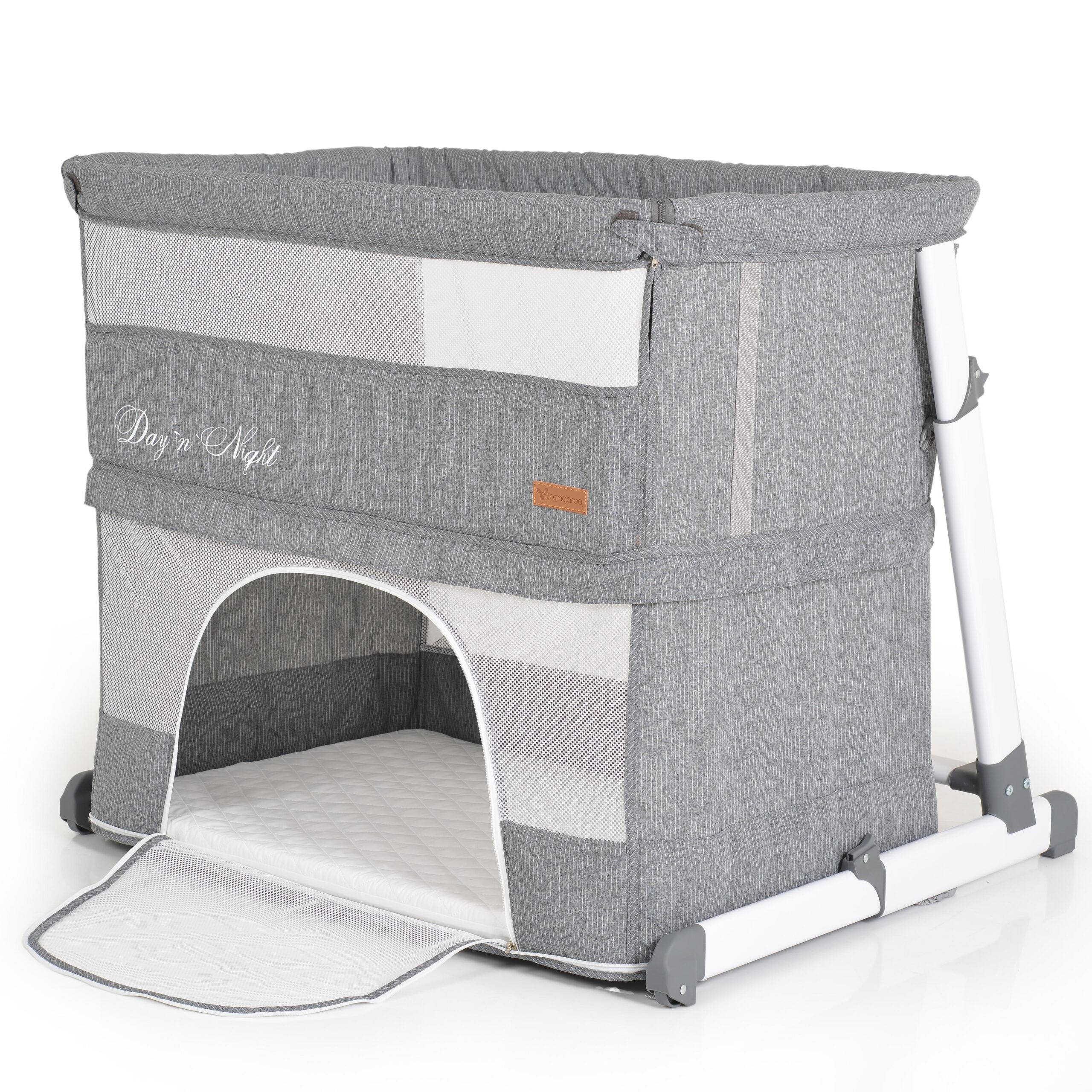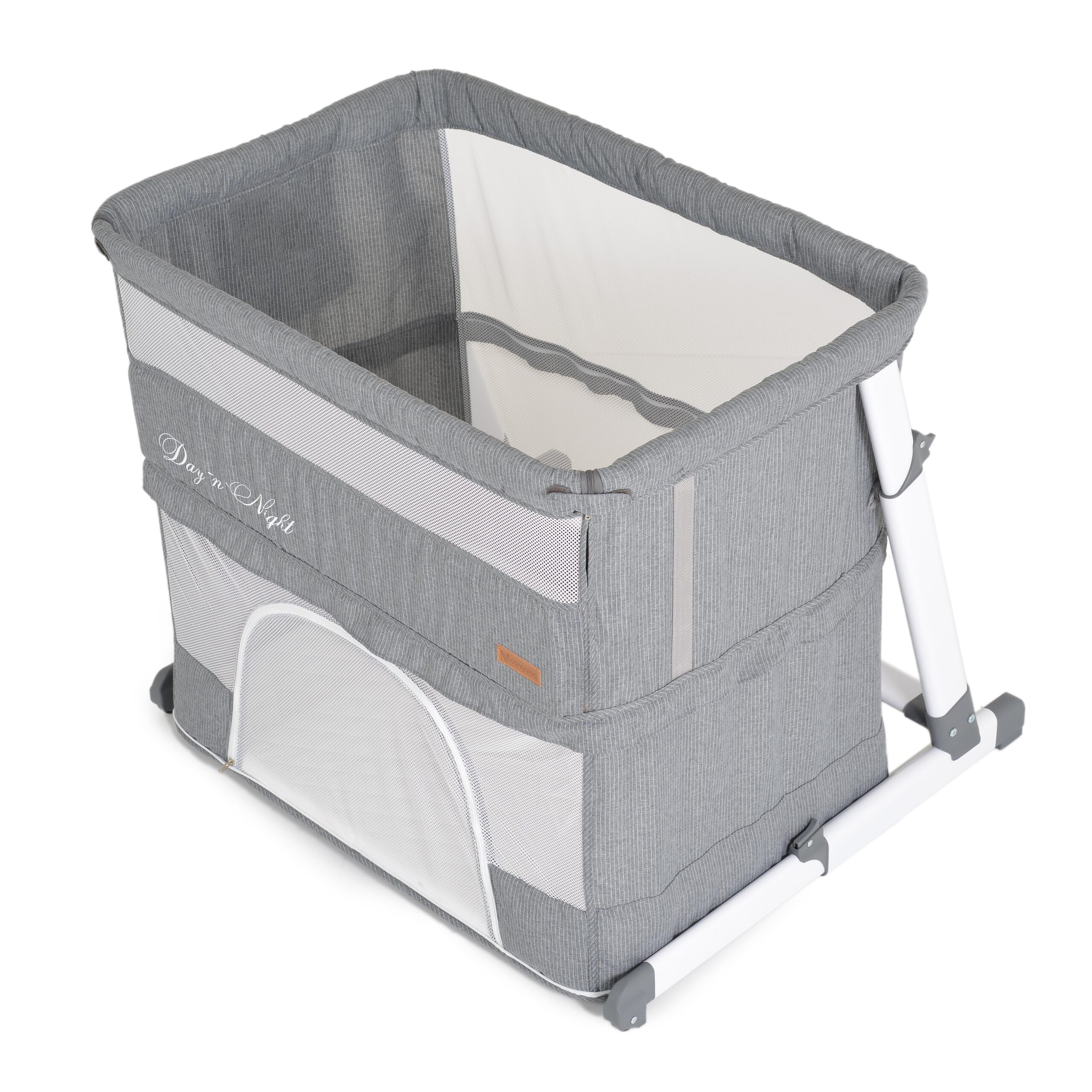 Практично бебешко креватче Day`n`Night съвместява няколко продукта в един – бебeшко легло, прикрепено към родителското за съвместен, но безозасен сън. Осигурява спокойствие за родителите и сигурност за бебето, самостоятелно бебешко легло с вдигната преграда и кошара за игра.