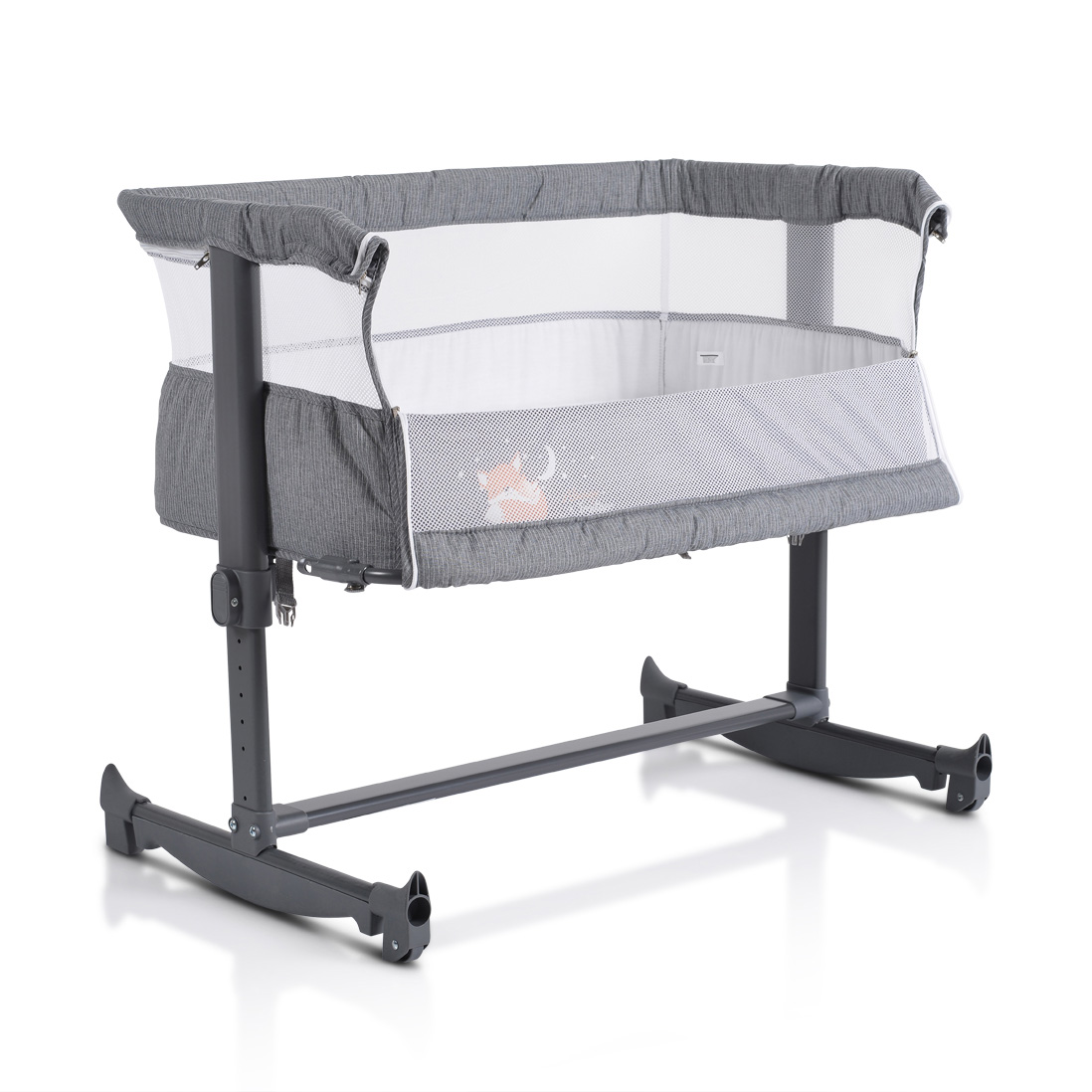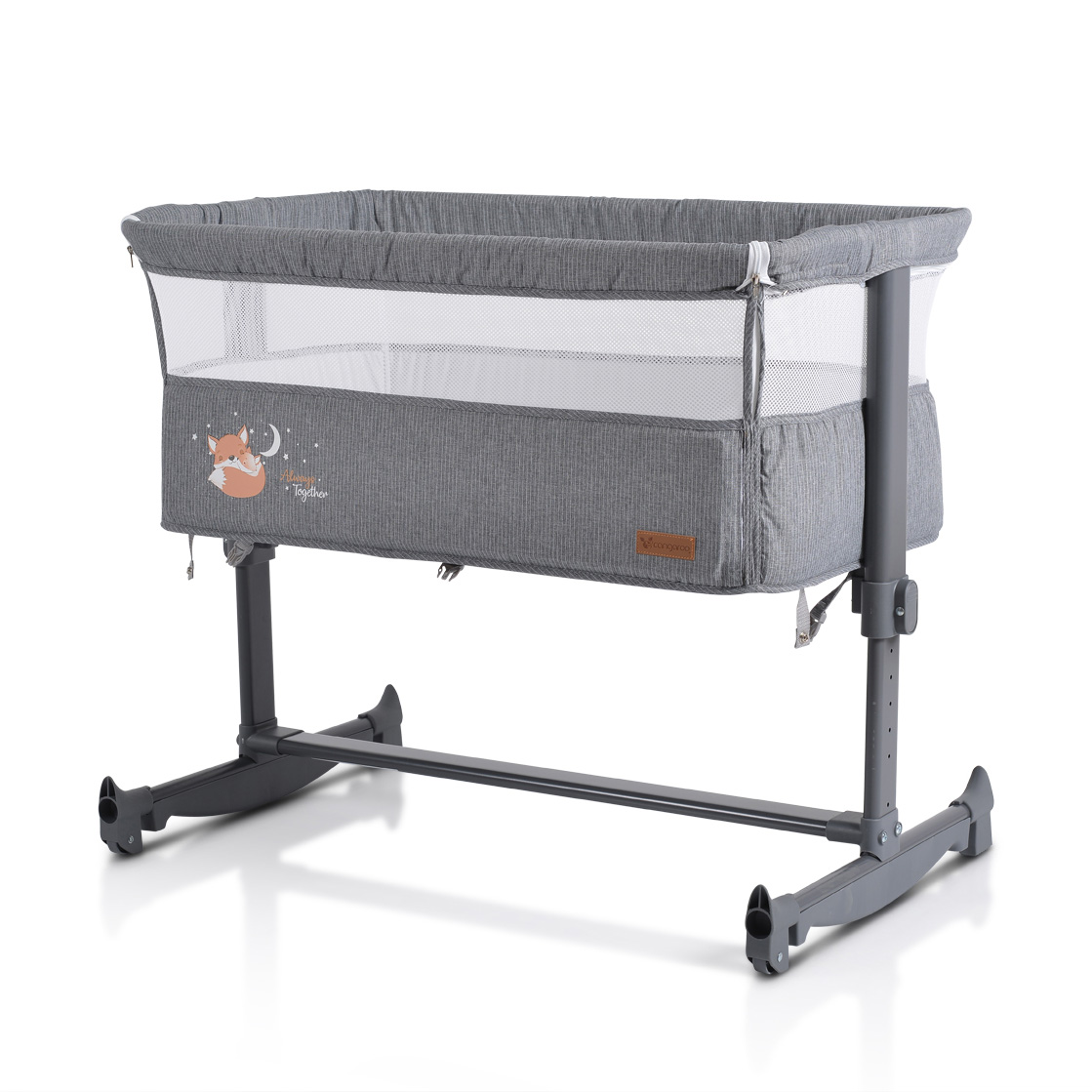 ВНИМАНИЕ! Леглото не е подходящо за деца, които могат да седят или да коленичат, или да се изправят. Продуктът не трябва да се използва преди да се прочетат инструкциите за употреба. Не използвайте функцията за фиксиране на бебешкото креватче към родителското легло, ако височината на леглото Ви е по-малка от 45 см или повече от 60 см над пода.