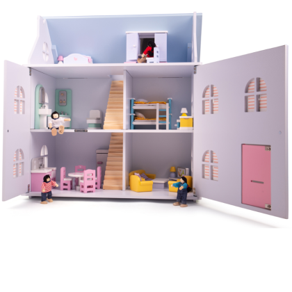 Къщата с бръшляна очаква детското вълшебно докосване, за да се превърне в истински дом! Тя е изработена от дърво, двуетажна е, а части от покрива се повдигат за лесен достъп до таванското помещение. Къщата не е обзаведена, мебелите и аксесоарите се предлагат отделно! Вратите отпред се отварят широко за да се достигне лесно до всички стаи. Къщата е подходяща за игри с приятели и е достатъчно просторна, за да бъде добре обзаведена с мебели и аксесоари. Тя е лесна за сглобяване и с много здрава конструкция, обещавайки години игри, насърчаващи въображението, ролевата игра и творческото мислене. Към нея могат да се закупят отделно мебели и куклички.