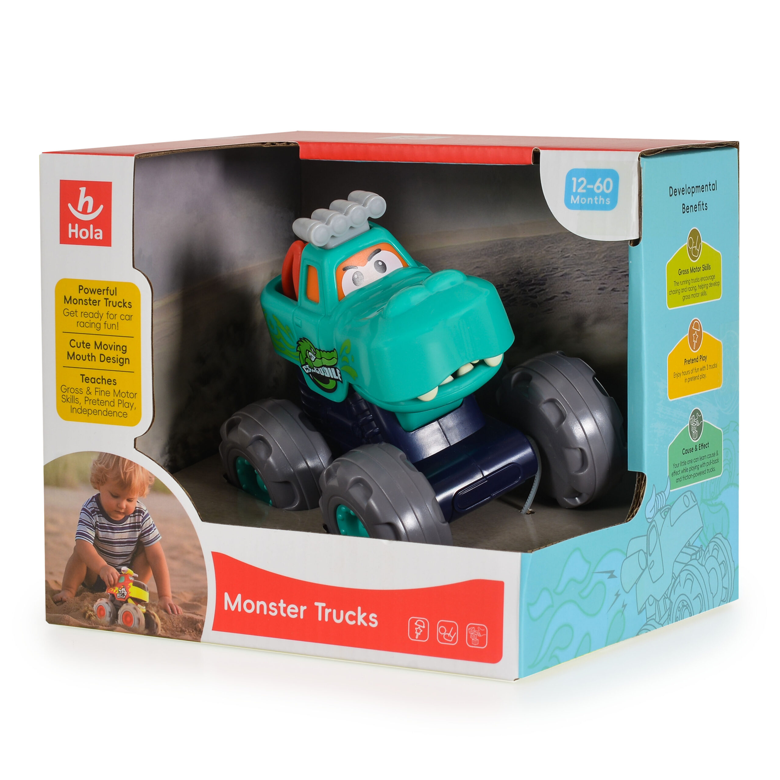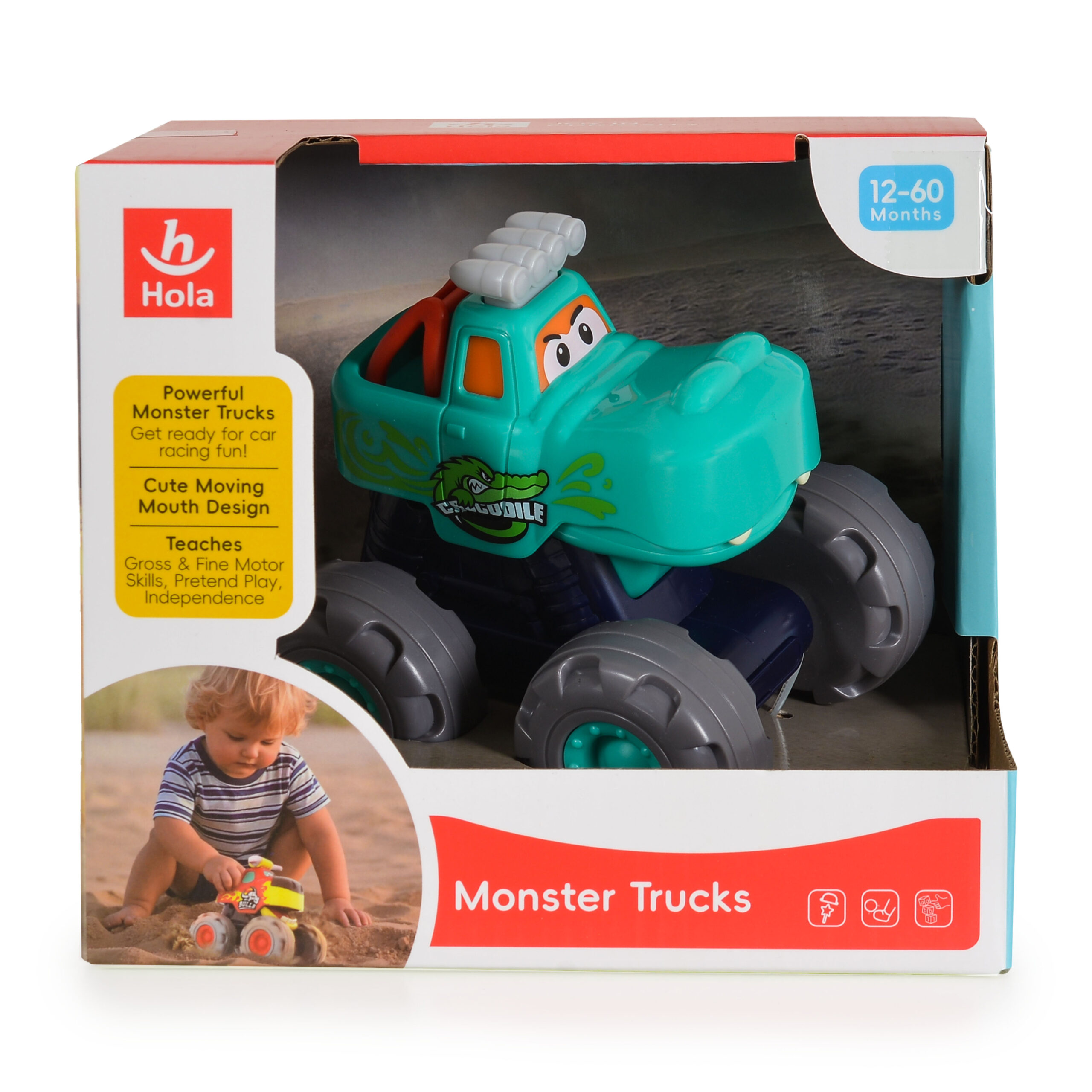 Забавен и ярък камион с дизайн на крокодил, идеален за малките изследователи! Със своите големи гуми и здрава конструкция, той е подходящ за игра както на закрито, така и на открито. При натискане на бутона, устата на крокодила се отваря, добавяйки допълнително забавление. Изработен от висококачествена пластмаса, подходящ за деца над 12 месеца.
