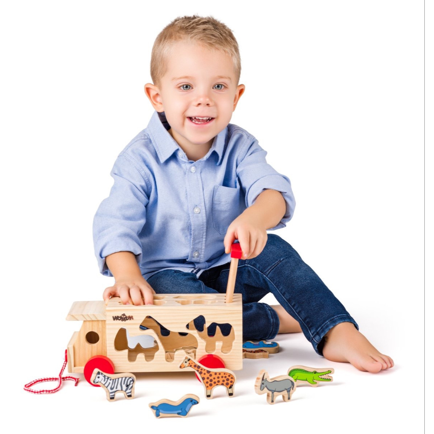 Дървен камион – сортер с животни