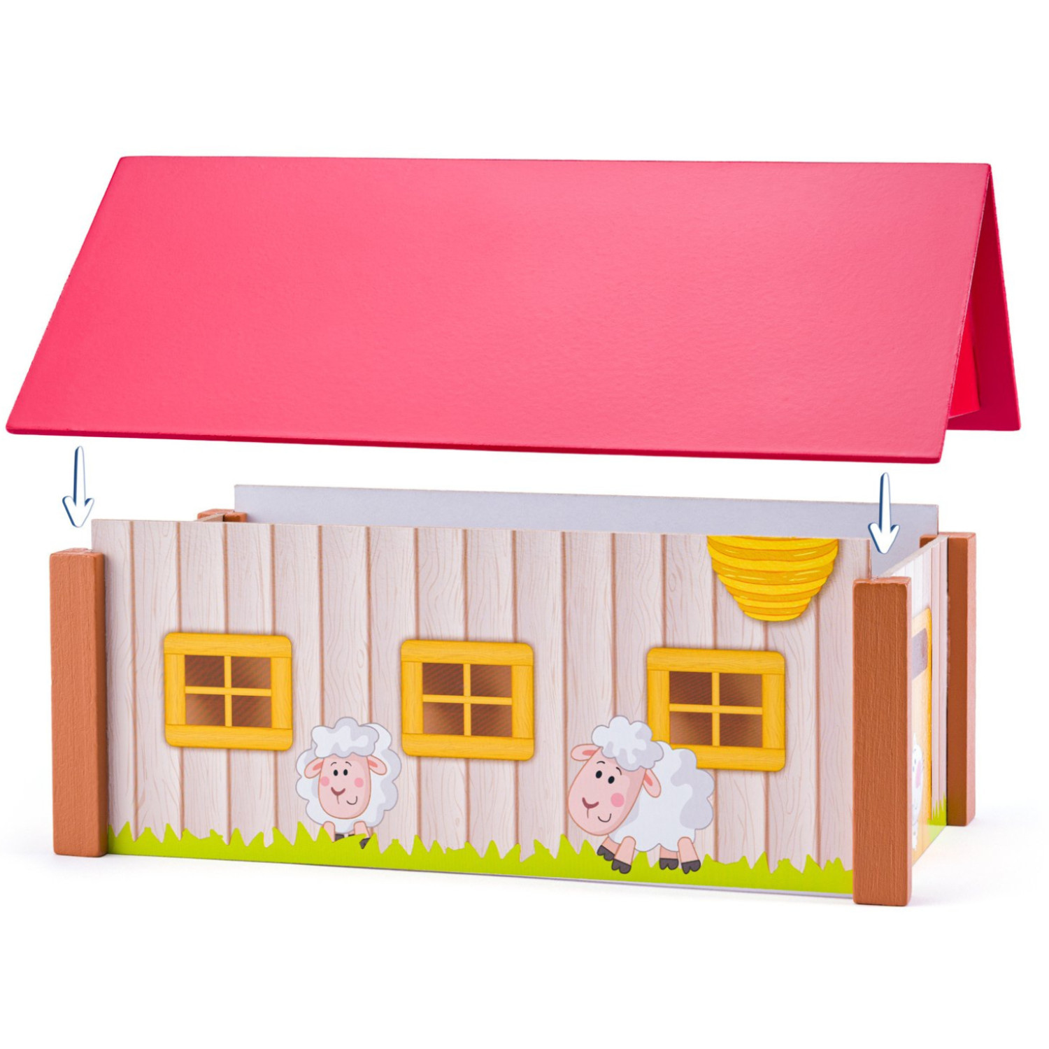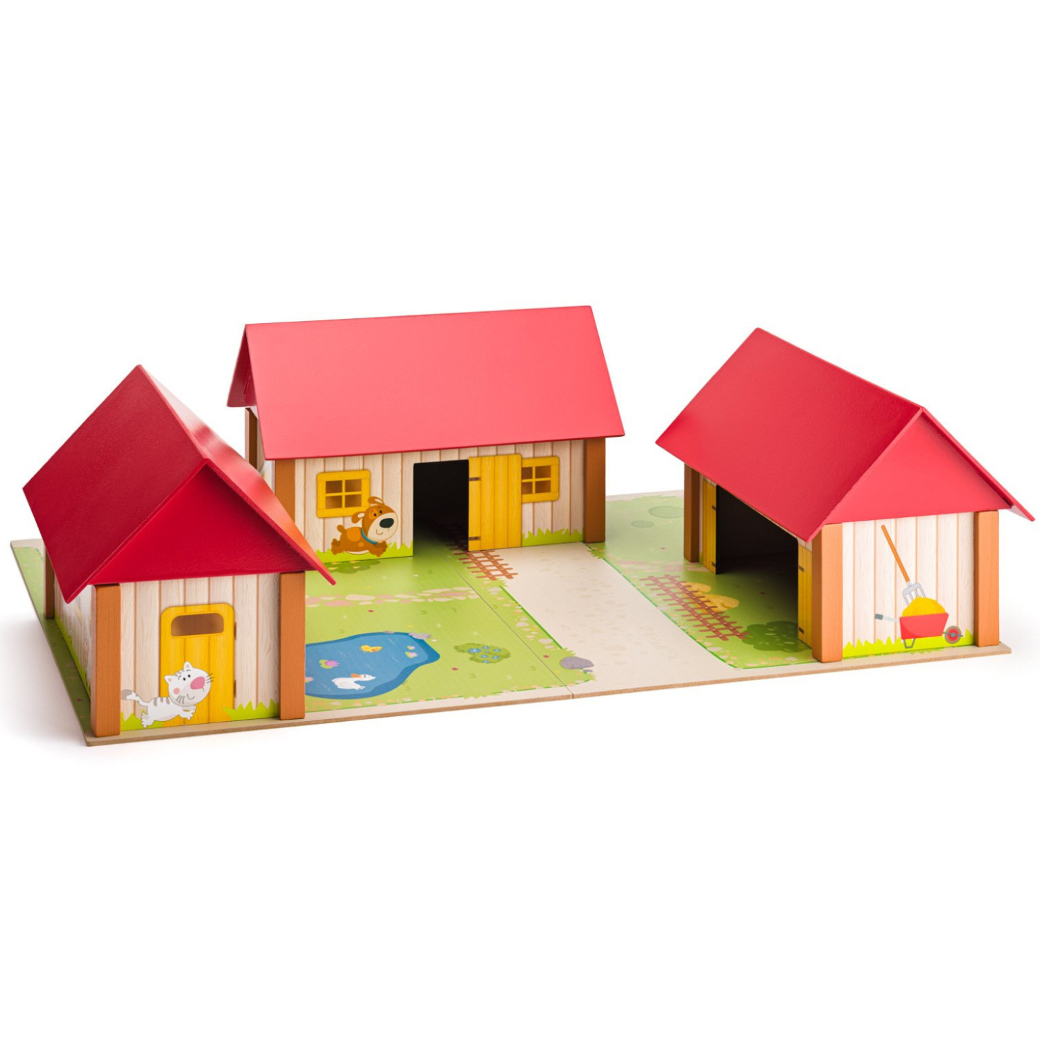 Дървен комплект Ферма с три сгради и подложка