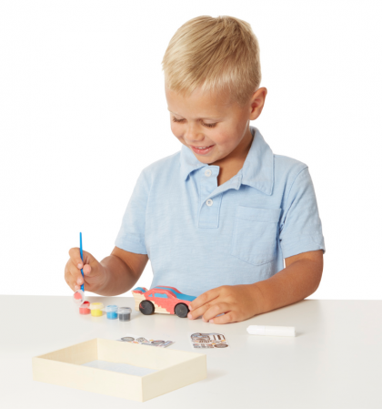 Подарете на детето си уникално творческо преживяване със специалния комплект за декориране на дървена състезателна количка! Този комплект дава възможност на малките любители на високите скорости не само да сглобят своя собствен болид, но и да го оцветят, декорират и персонализират според своето въображение.