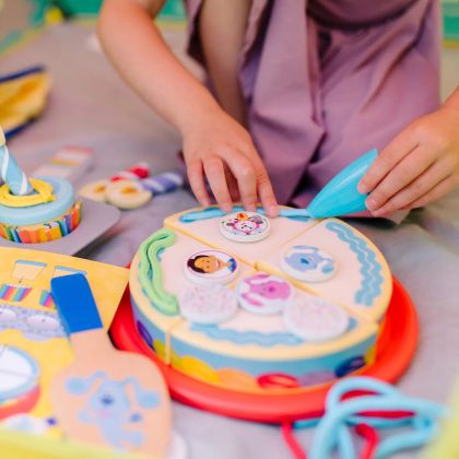 Празнувайте рожден ден с Blue! С този забавен и образователен комплект децата на 3+ години могат да украсяват кексчета и торта, да организират въображаемо парти и да развиват фината си моторика!