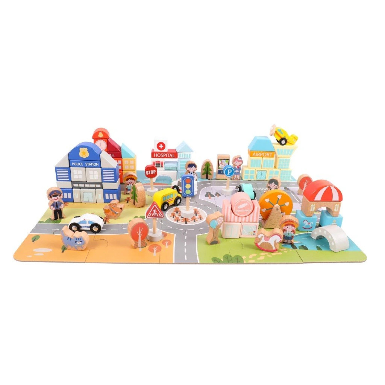 Дървен конструктор Град, 104 части