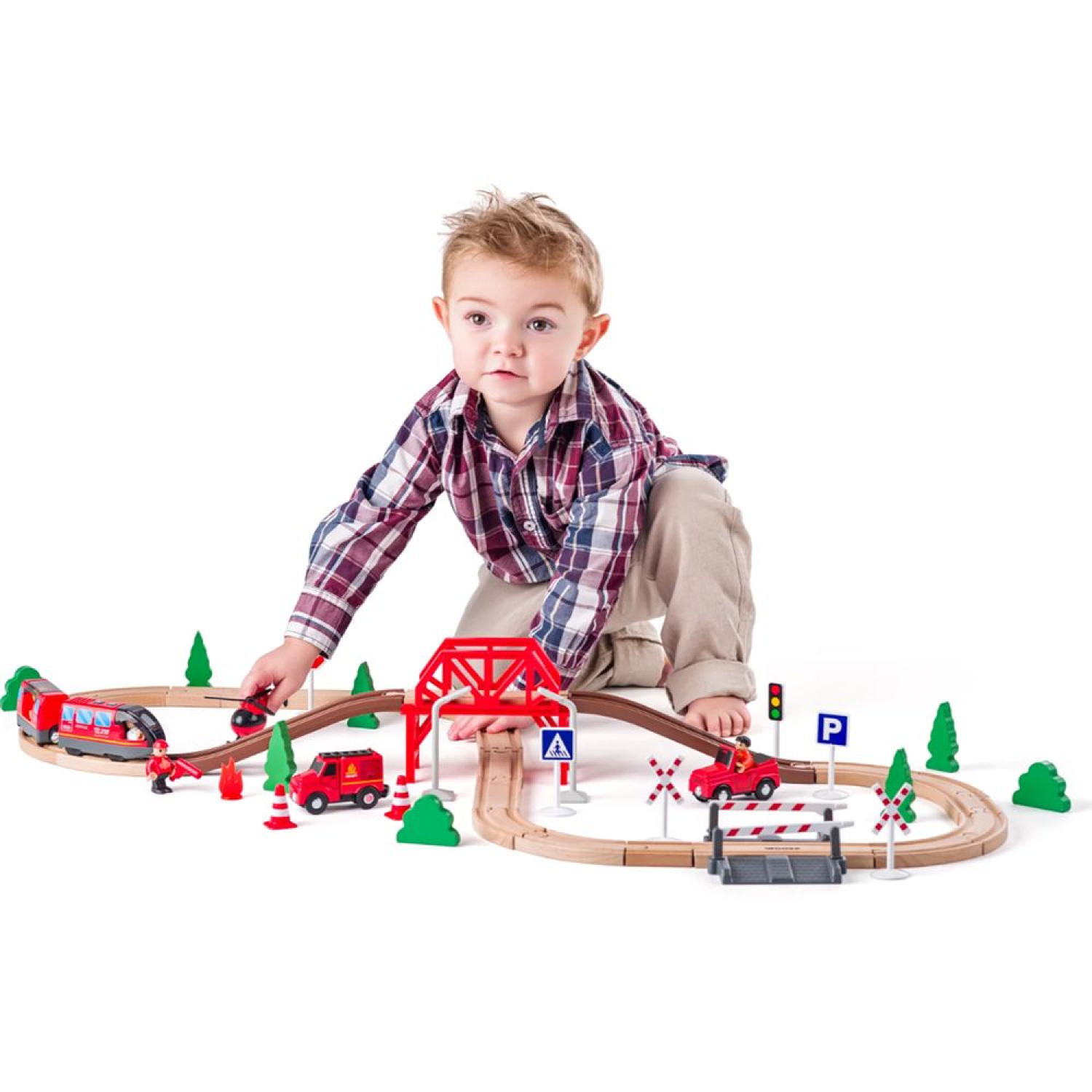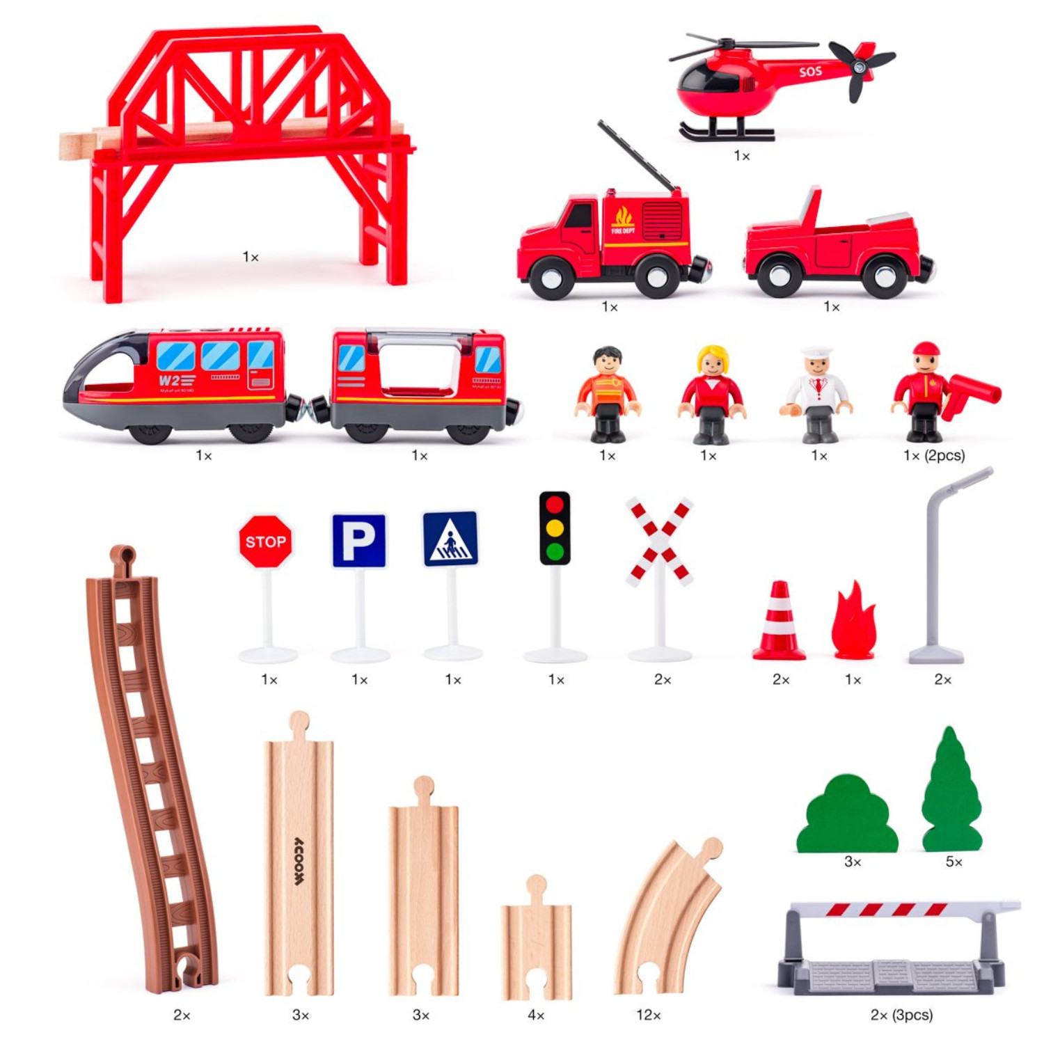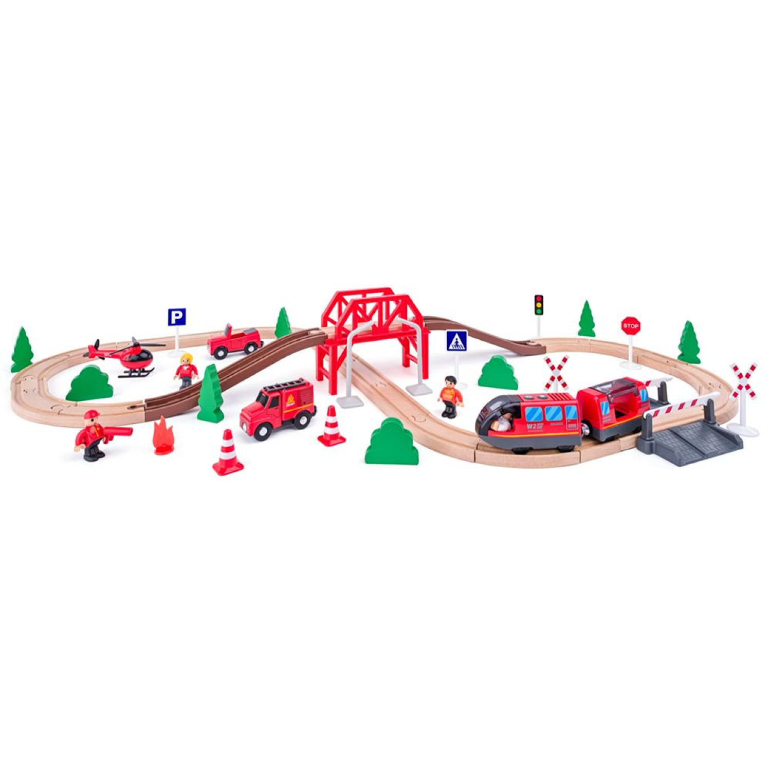 Дървен влак с релси Пожарникари, 60 части