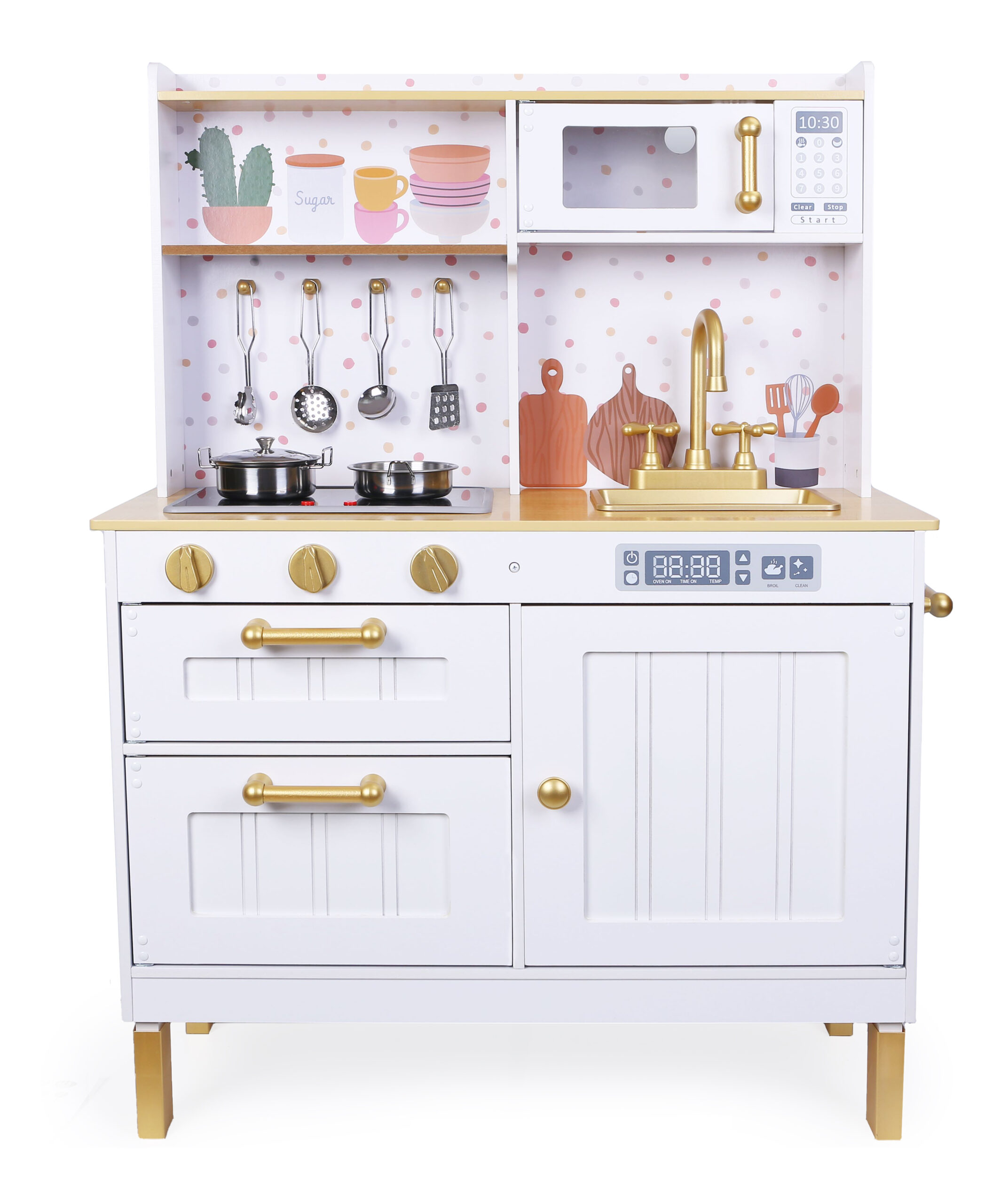 Изработена от висококачествени материали и боядисана с безопасни за деца бои, тази кухня гарантира спокойствие и дълготрайна игра.