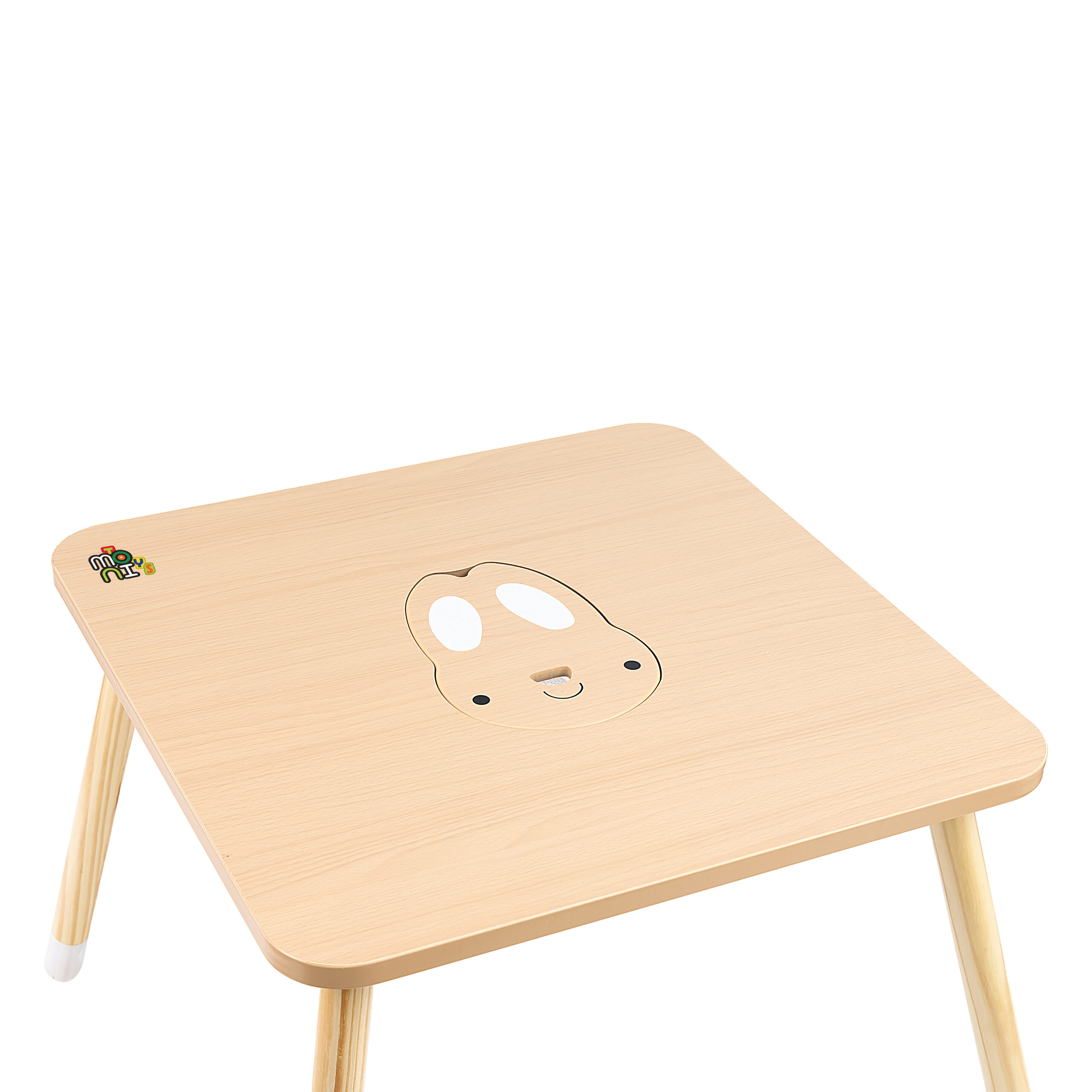• Комплектът включва дървена маса и две столчета с дизайн на зайчета