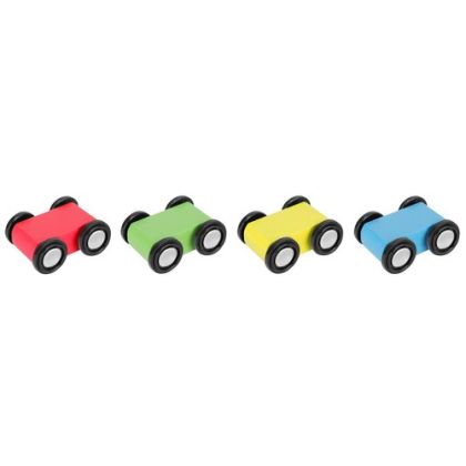 ✔️ 4 ярки състезателни коли – зелена, синя, червена и жълта