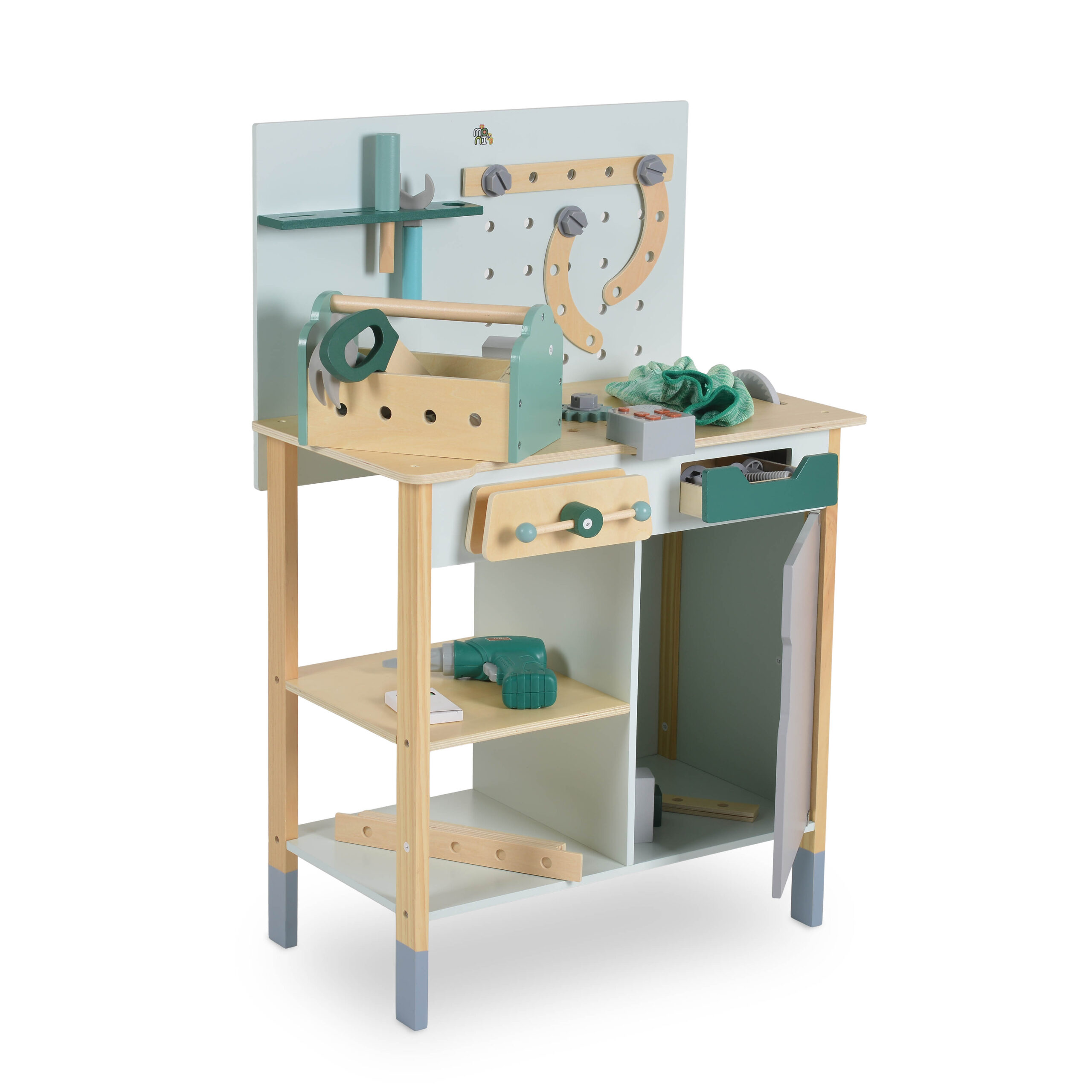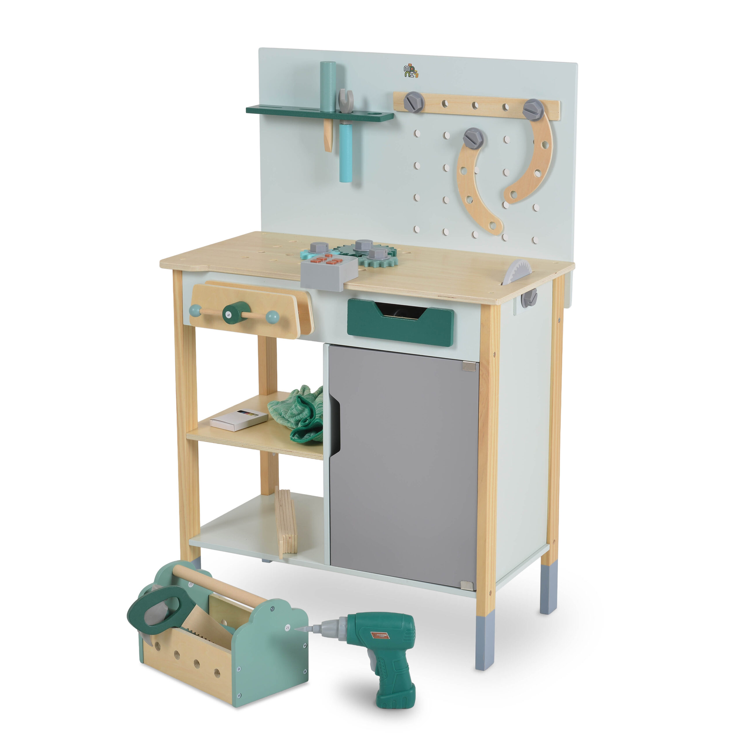 Превърнете игрите в истинско приключение с тази детска дървена работна маса от Moni Toys! Създадена специално за малките майстори, тя развива въображението, сръчността и координацията.