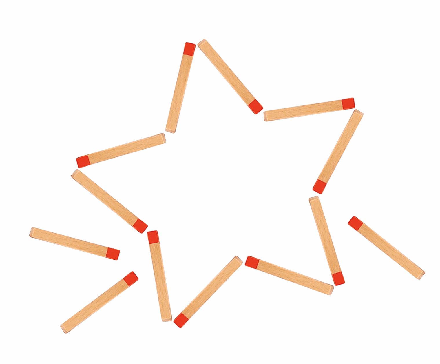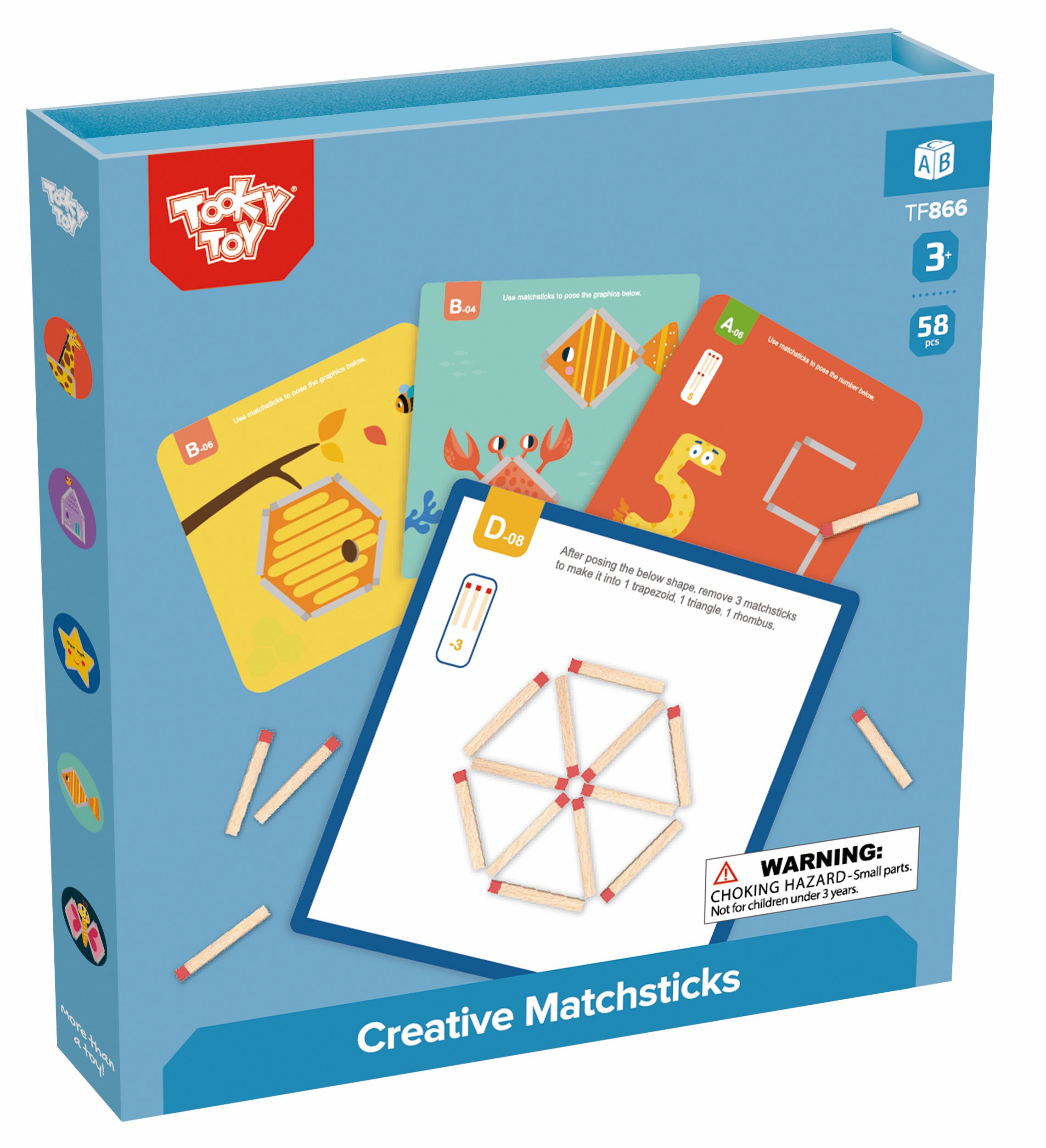 Играта разполага с дървени магнитни клечки за кибрит, които децата могат да поставят върху картите, за да пресъздадат форми и картини.