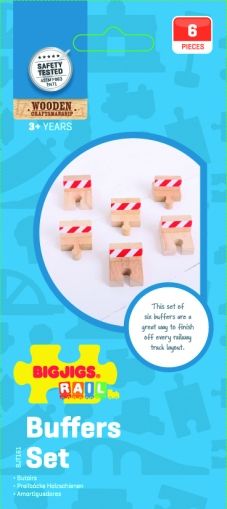 Сет от 6 дървени стоп релси, с които да сложите край на релсите. Те са съвместими с всеки ЖП комплект от дърво. Дължината на всяка релса е 9,5 см. Изработката е висококачествена от безопасни материали.
