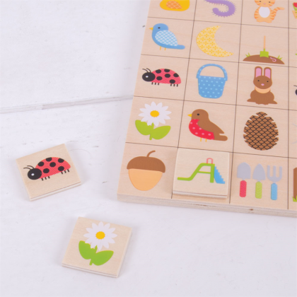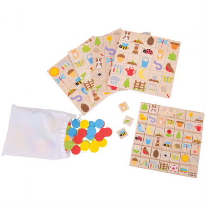Забавление за цялото семейство! Победи опонента си, като събереш всички грдински елементи на своят дъска. Всеки играч си има дъска и играта продължава, докато единият от играчите не направи линия, а след това фул хаус. Играта ще запознае децата с различните предмети и животни, намиращи се в градината и ще развие тяхната координация и способност за свързване на изображения. Изработката е от дърво, а боите, с които е боядисана играта са на водна основа. Играта е подходяща за 2-5 играчи.