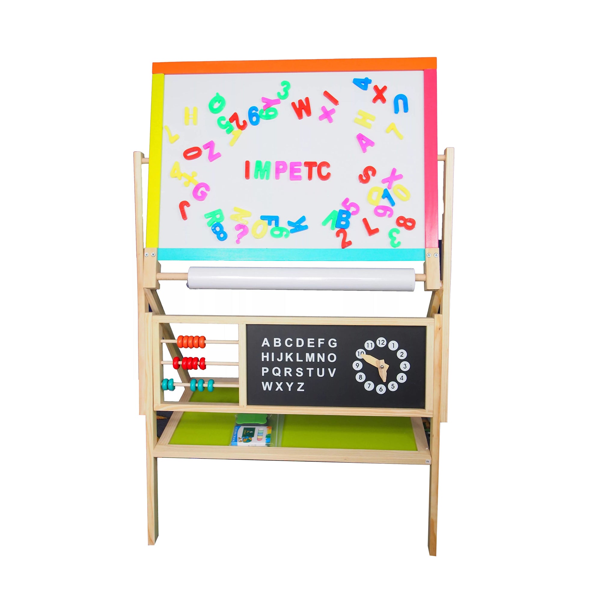 - Освен творческите си функции, образователната дъска позволява на Вашето дете да се съсредоточи върху математиката и английския език, тъй като има магнитна азбука с 26 букви, 20 цифри, часовник и сметало, за да упражнява своите умения.