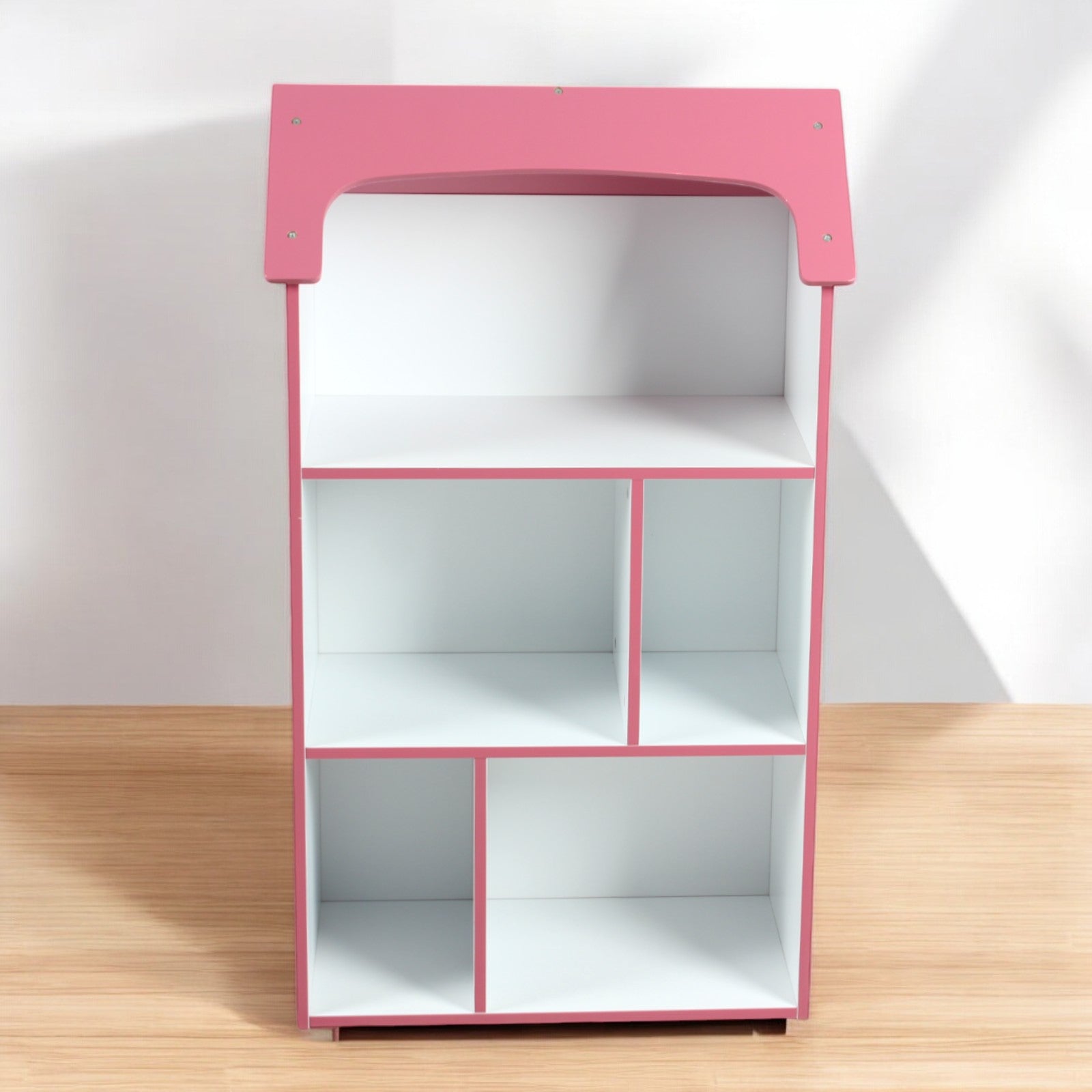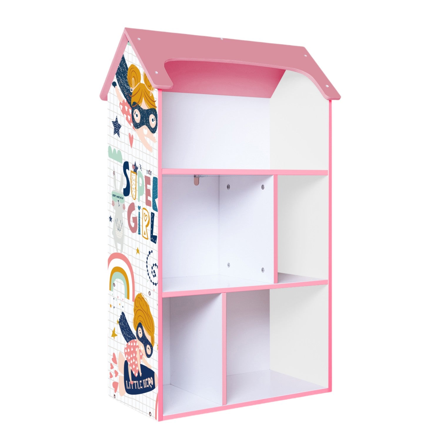 Детска етажерка GINGER HOME – Къщичка SUPER GIRL, Розова за съхранение на играчки и книжки