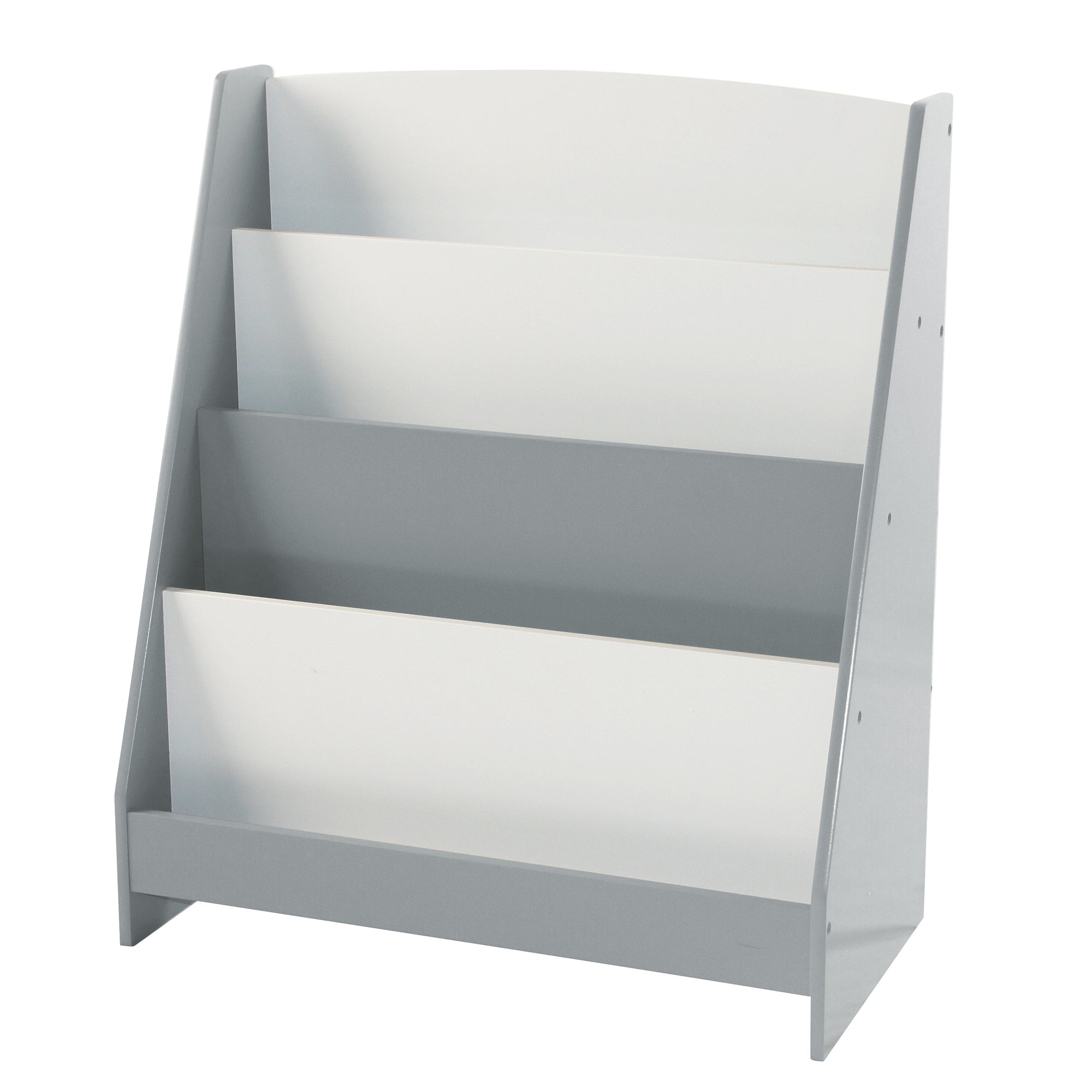 Детска Етажерка за Книжки и Списания, Библиотека с Рафтове, Дървена Секция – Бяло и Сиво
