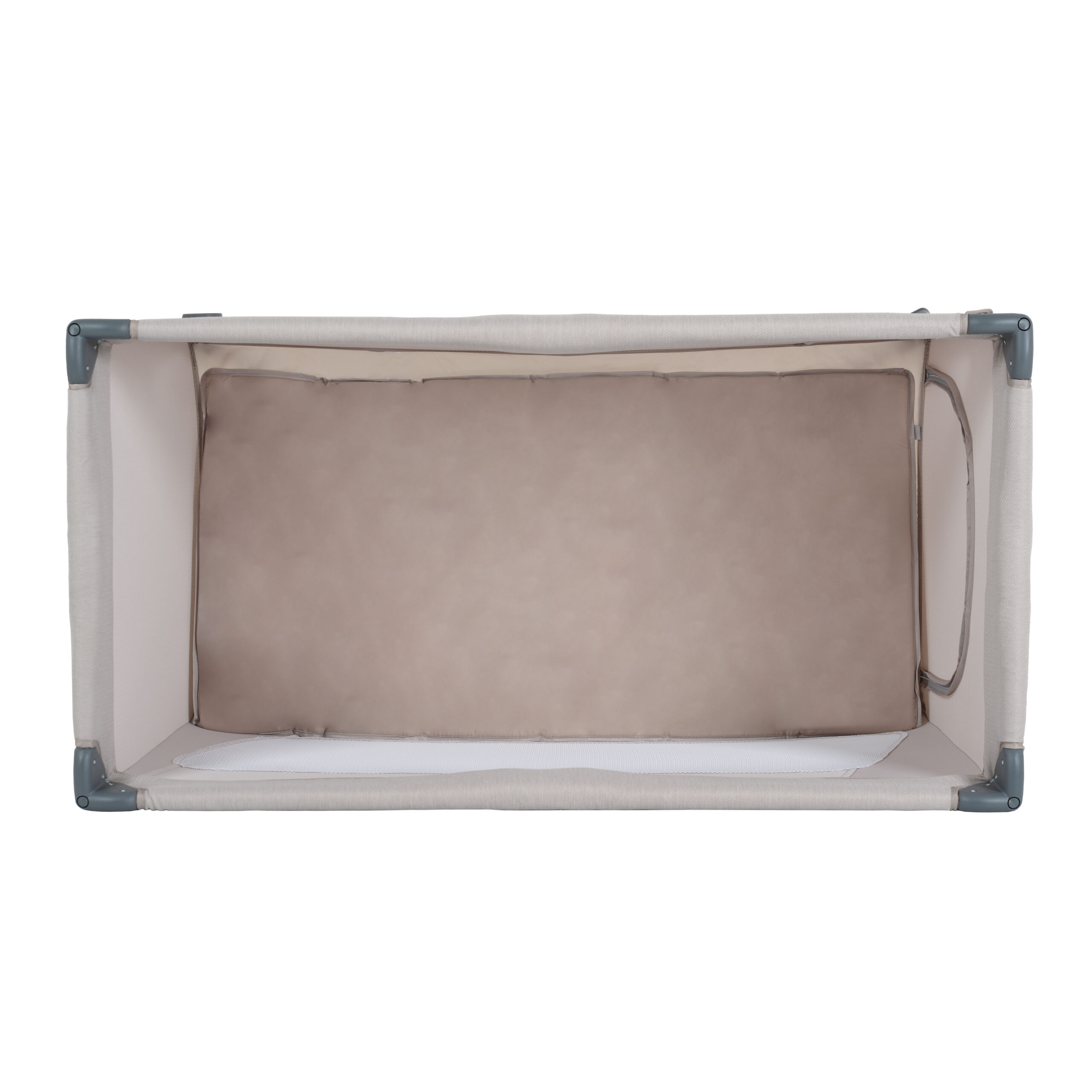 One Touch е не само функционална, но и стилна – изработена от висококачествен плат с елегантен десен, който пасва на всеки интериор. Може да се използва както за сън, така и за игра.