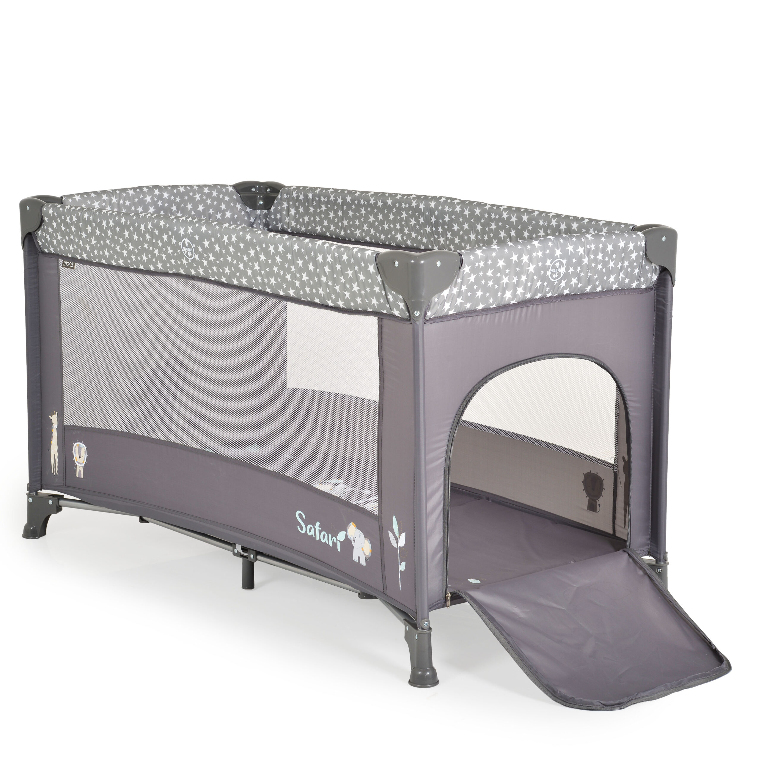 Детската кошарка Safari съчетава компактен дизайн, функционалност и комфорт, осигурявайки сигурна среда за сън и почивка както у дома, така и по време на път.