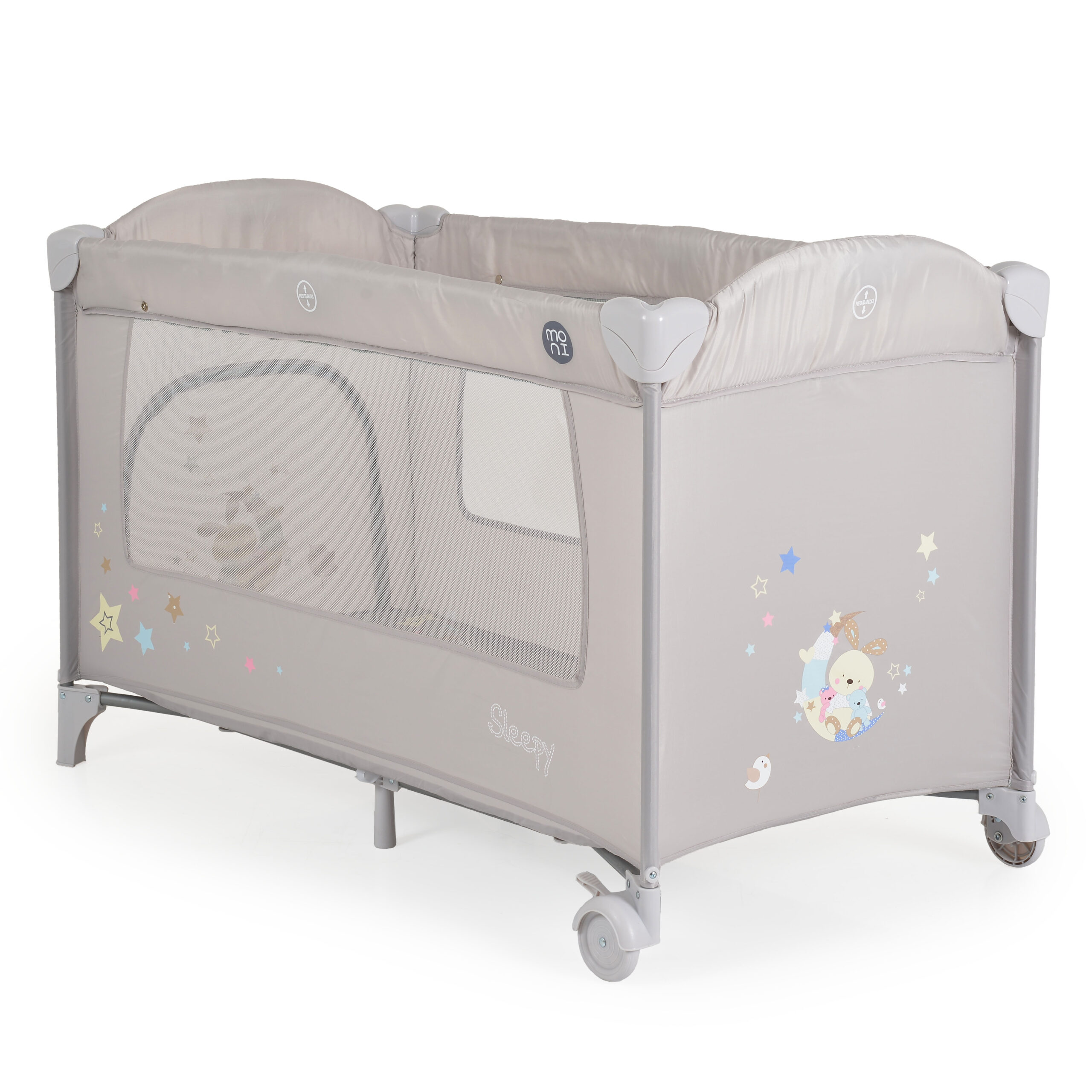 Бебешката кошара Sleepy е създадена с много любов и внимание към най-малките съкровища. Тя предлага на Вашето мъниче всички удобства както за игри, така и за сладък сън. Кошарата е подходяща за новородени бебета и деца до 15 килограма.
