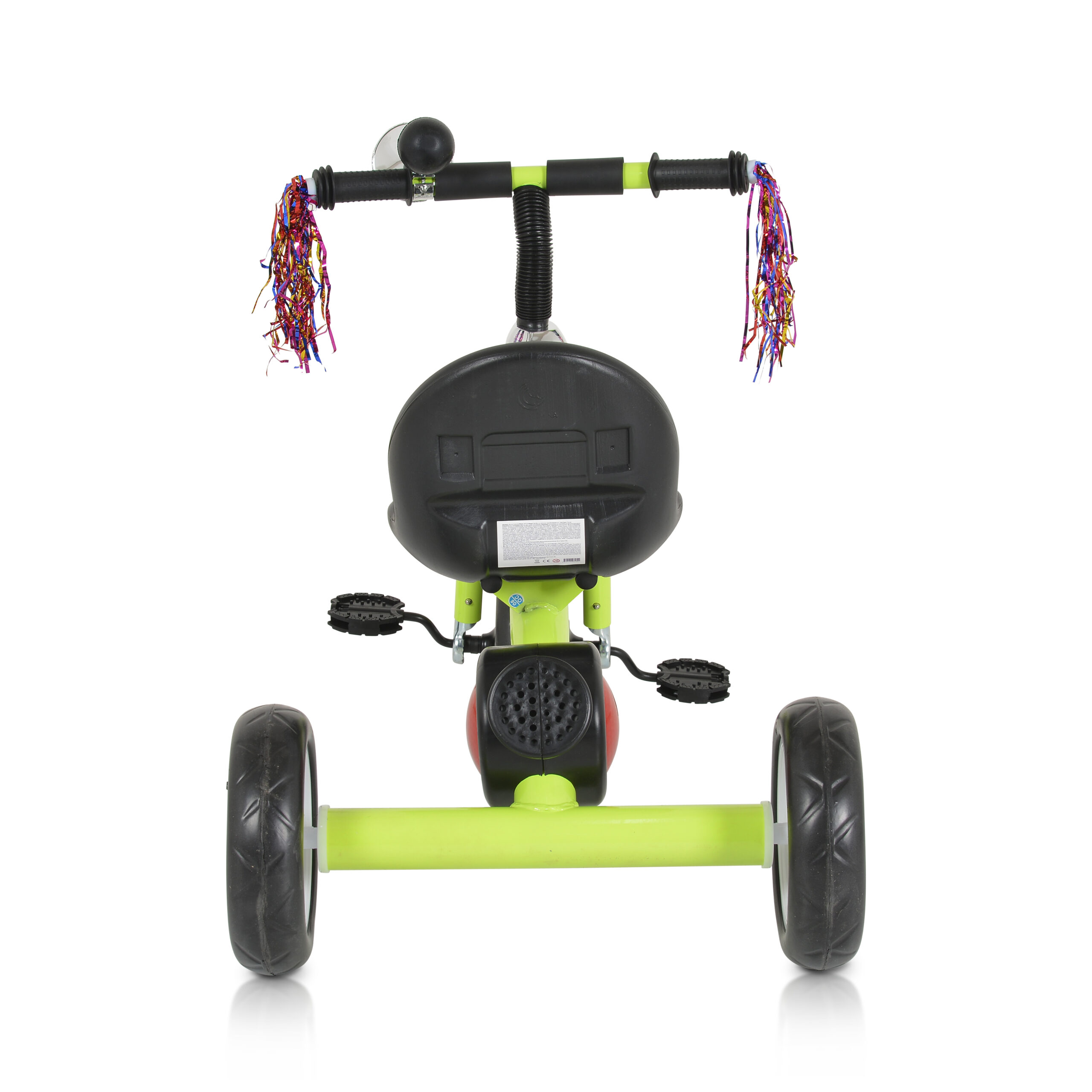 Продуктът е с меки EVA гуми, удобна седалка, клаксон, светлини на гумите, табло с мелодии и светлини.