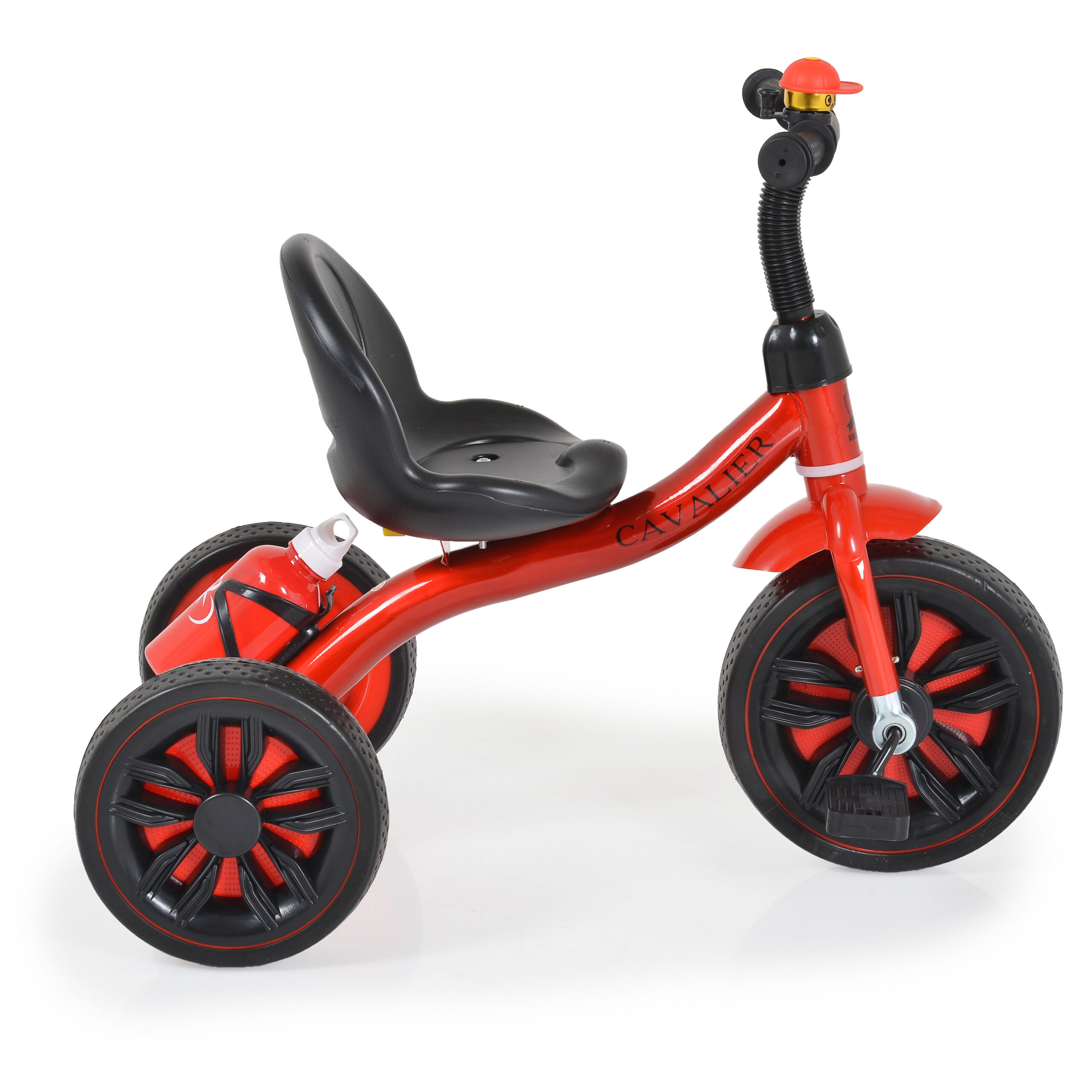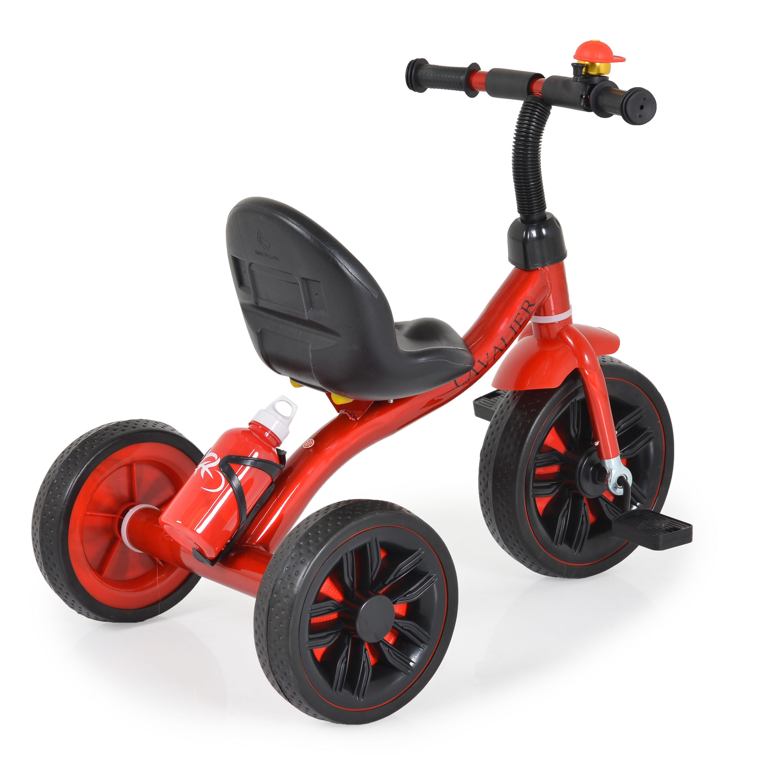 Продуктът е с меки EVA гуми, удобна седалка, метално звънче и шише за вода с поставка.