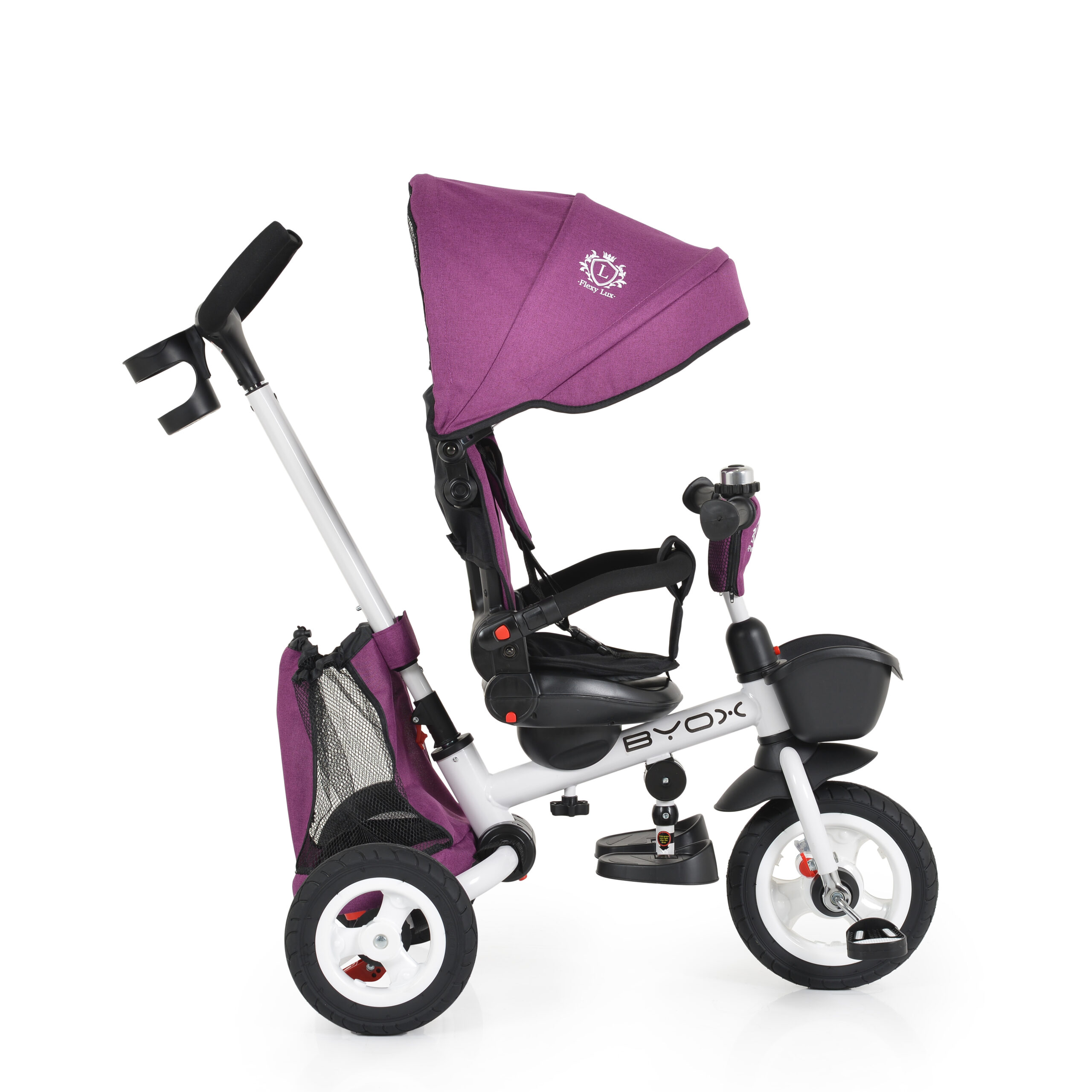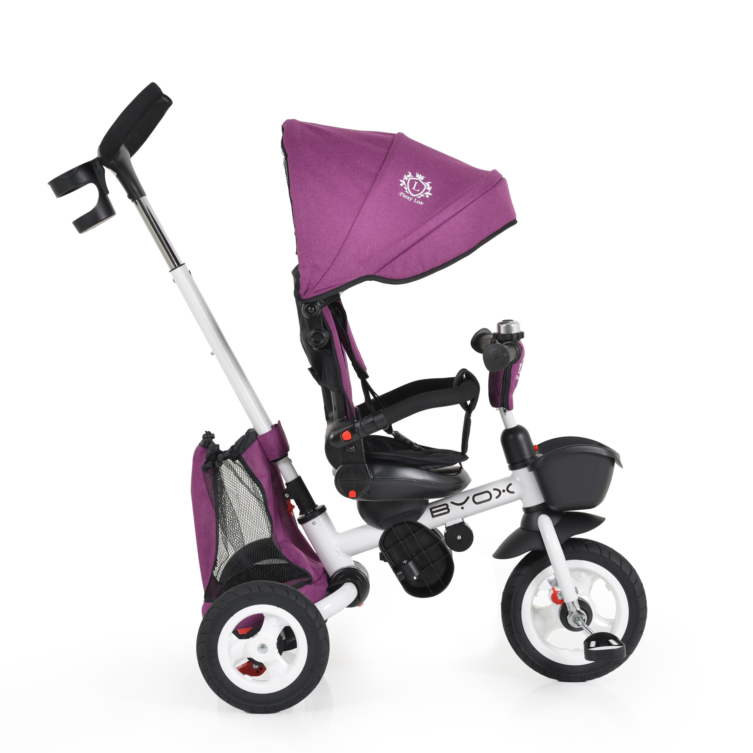 Функции: Регулируема седалка •Телескопична дръжка •Седалка въртяща се на 360° •Сваляща се тапицерия •Сваляща се дръжка •Регулируема облегалка •Предпазен колан 5-точков •Поставка за чаша •Поставка за крака •Мека тапицерия •Кош преден за аксесоари •Звънец •Заключване на педалите •Дръжка с възможност за регулиране