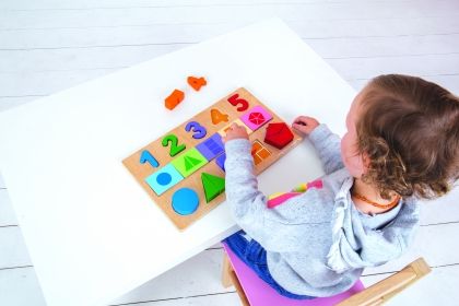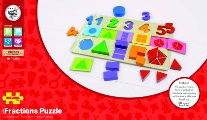 Първият пъзел на детето с числа и фигури е чудесен начин да го научите на базови умения за смятане, дроби и фигури. Ярко оцветените части ще привлекат вниманието и задържат интереса. Можете да ги използвате и за научаване на цветовете. Всяко едно число ли фигура е изобразено върху дървената дъска. Целта е парчетата да се поставят в местата им и така да се получи фигура или число. Заниманията с него ще развият въображението, фината моторика, логическото мислене и концентрацията.