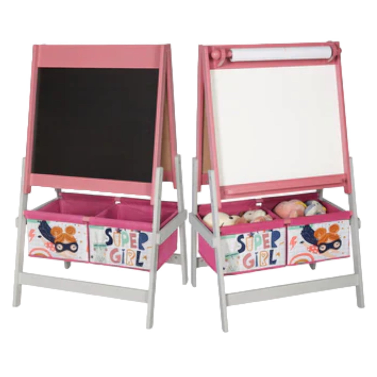 Детски Статив за Рисуване GINGER HOME 3 в 1 – Черна Дъска, Бяла Дъска, Хартиена Ролка, SUPER GIRL