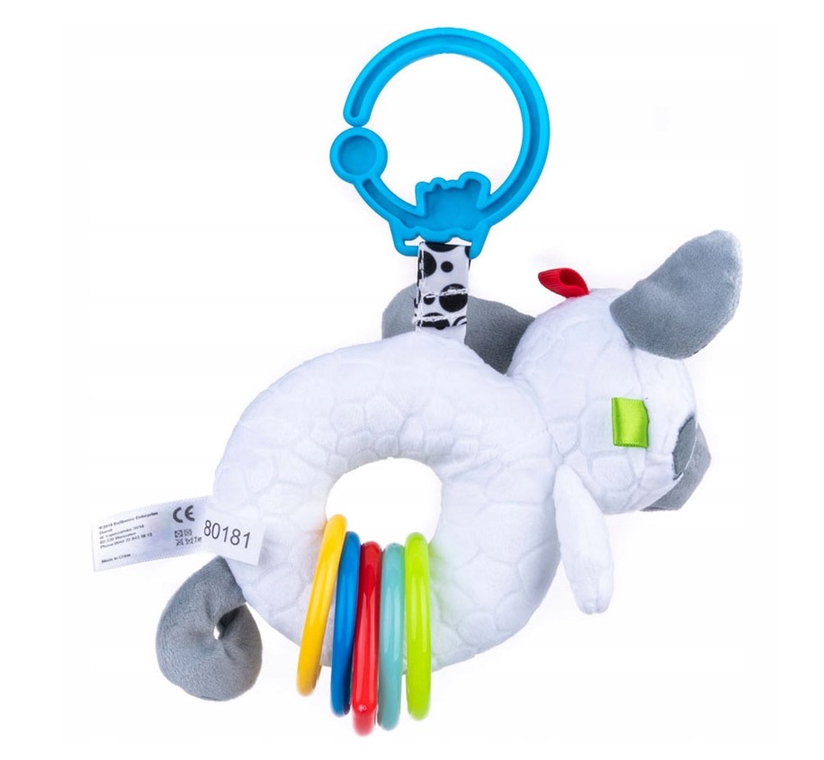 Украсена е с етикети с различни текстури и цветни кръгове, които весело тракат при разклащане.