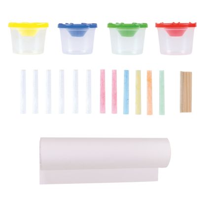 • Комплектът съдържа: дъска, ролка хартия, 4 боички, 12 тебешира и гъба.