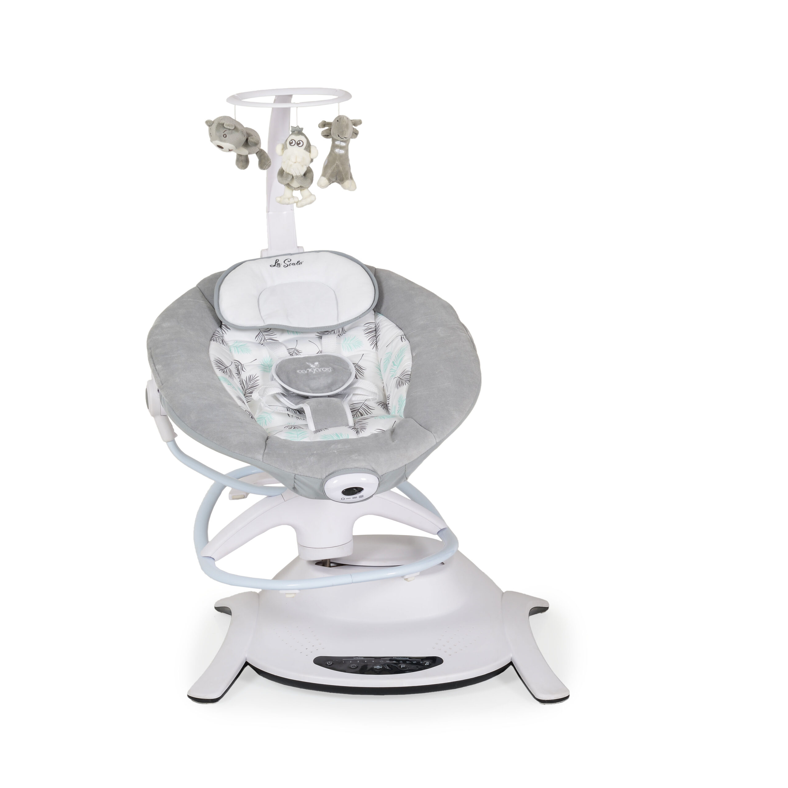 Електрическата люлка La Scala, Cangaroo е незаменим помощник за всеки родител. Тя съчетава удобството на люлка и шезлонг с добавена вибрация, за да осигури максимален комфорт и спокойствие на вашето бебе. La Scala имитира естественото странично люлеене на родителите с 6 различни режима и 5 степени на скорост, които нежно успокояват и приспиват детето. Благодарение на компактния си размер, люлката лесно се побира във всяко помещение, така че винаги да сте заедно.
